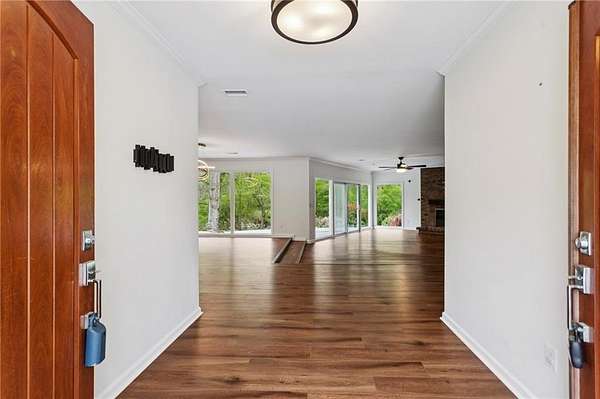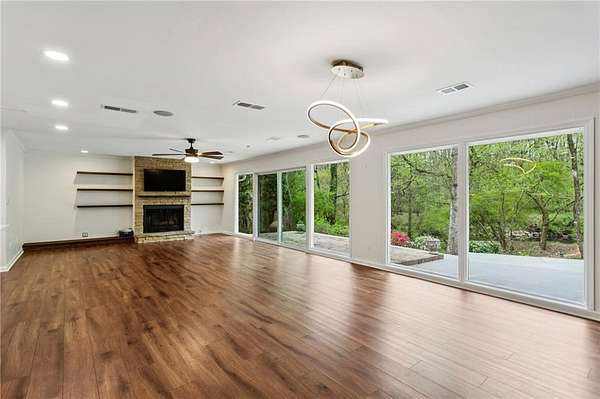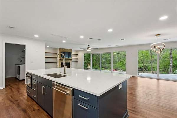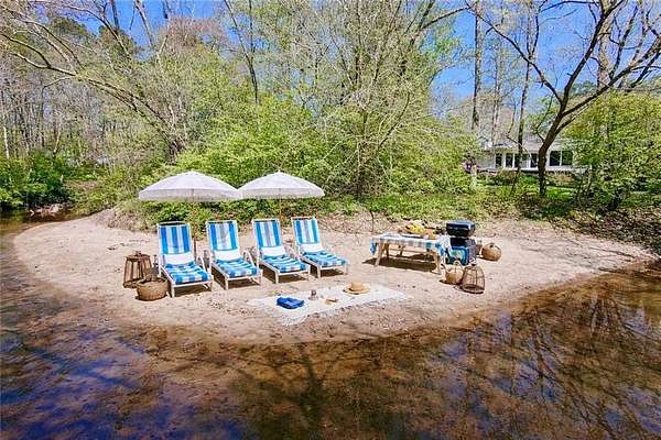 OWN YOUR OWN NATURE PRESERVE with a PRIVATE BEACH!! Renovated Ranch on 2.74 acres, right in the MIDDLE OF INDIAN HILLS COUNTRY CLUB. Has to be one of the largest lots in the neighborhood. True One-Level Living on a quiet culdesac. WALLS OF WINDOWS across the back, Huge patio with extra decking overlooking the back yard expanse. Open concept with fresh High-end Kitchen, featuring ample cabinetry, a 48" 6-burner plus grill Gas Range, Wine Fridge and Oversized island. Showroom quality garage can doubles as a home gym with split system for A/C. Primary Bedroom overlooks the back as well with a large custom designed closet and luxurious spa bath. Flat driveway for ease of access. Hall bath recently renovated with backlit vanity mirror. Three secondary bedrooms round out this ideal layout. Also in the Best East Cobb School districts. Seller's new job has just created your opportunity!