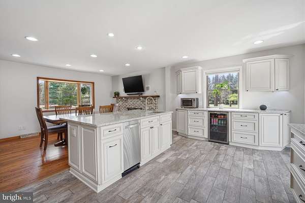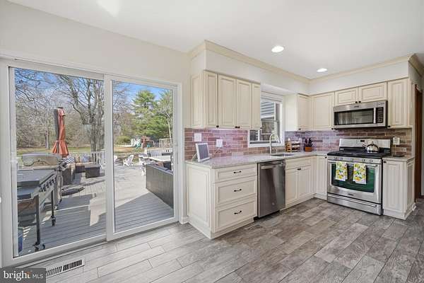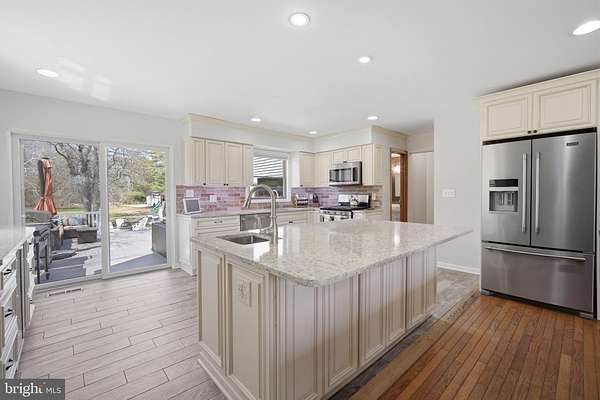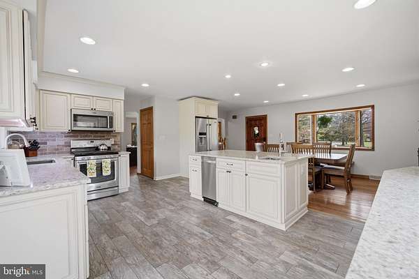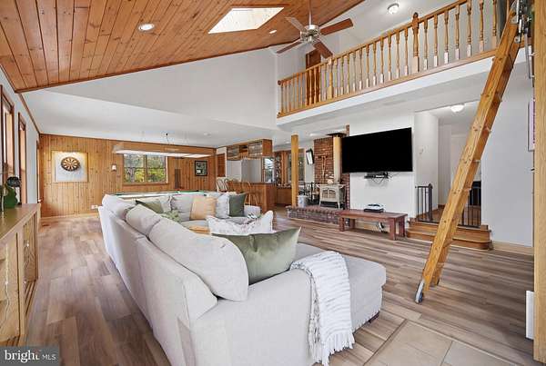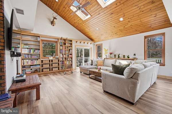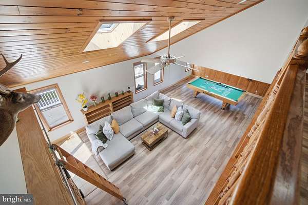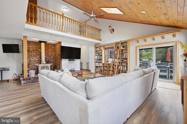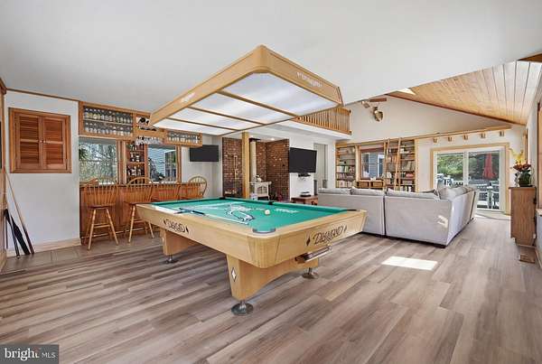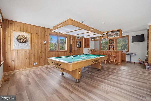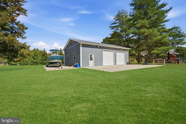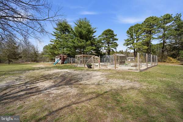 This is what dreams are made of!! 5 acres in the Germania Section of desirable Galloway Twp!! 30X40 Pole Barn Raised Garden Bed area Fenced in area for pets 3118 square foot home with options galore!!! Comfortable yet sophisticated! Welcome to a new lifestyle! Set back on an inviting lot with room to roam!!! The main floor of the home is an entertainers dream with the main living space offering a built in bar and game area for hours of fun! The vaulted ceilings and open concept floorpan with builtin solid wood shelving and plenty of natural light make this a comfortable and relaxing space. The wood stove heats both the main level and upstairs! The way the home is set up allows for a natural flow from the main living area to the expansive deck back into the home through the kitchen allowing guests to stay connected but also gives everyone room to move around and enjoy a game of darts or move outside to relax and enjoy the beautiful scenic landscape! The upgraded and stylish chef's kitchen features quartz countertops, cabinetry from the Fabuwood Collection, built in additional storage with a beverage fridge. Open kitchen with dining area and plenty of room to work in the kitchen while entertaining guests is the heart of this home and will bring years of memories! The main level also features a bonus room with space for a gym or another family room. There is also plenty of room for an additional sleeping area with the office space which is conveniently located on the main level. This space has builtin wood shelving and also features a closet so it could be your 5th bedroom as well! The upstairs level features 4 total bedrooms. The Primary bedroom features a large walk in closet and its own bath. The additional 3 bedrooms are spacious (see the floor plans for measurements). This level also has a full hall bath and is completed with a loft area for your reading nook or additional Zen space! This home is versatile for the growing family. Time to walk outside and enjoy your 600 square foot multi tiered deck with plenty of room to gather and enjoy those summer days watching the kids run around and play! Custom stamped concrete EP Henry patio and built in fire pit. The 30 x 40 massive pole barn with water and electric panel allows for multiple uses including room for classic cars, workshop, storage and features 2 access doors, concrete surround, room for a boat/RV. It can also accommodate a lift for the serious car enthusiast! The 40 x 50 raised garden area has water and electric. The home features solar panels for extra savings! This is your forever home! Attic storage, newer roof (7years), Anderson Windows and slider doors. The owners installed new dual HVAC units and upgraded to a tankless water heater and upgraded electric panel! There is plenty of parking for all of your guests too!! This home is truly a show stopper!! A MUST SEE!!! Loft photo is digitally enhanced to show what you could use it for and the grass has also been digitally enhanced. The fireplace in kitchen has not been used by the current owners.