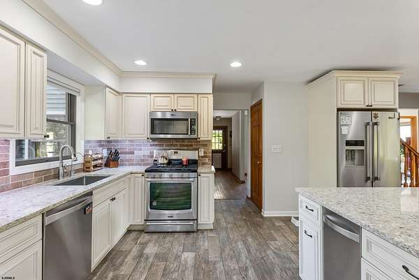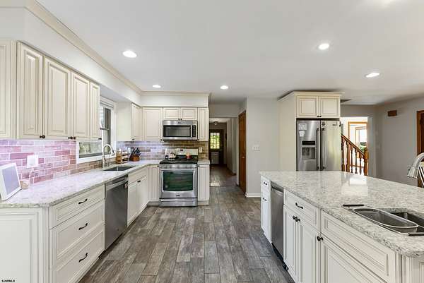*GALLOWAY WEST END NEW LISTING ALERT*5 BED 2.5 BATH*ANDERSEN WINDOWS*BASEMENT*2 ZONE NEW HVACS(YORK) W/ 5" MEDIA FILTERS FOR CLEAN AIR*$AVE WITH $OLAR*DETACHED 30X40 POLL BARN W/ 2 INSULATED 10' GARAGE DOORS, WATER, ELECTRIC, 220V CAMPER HOOK UP & CONCRETE PAD AROUND PERIMETER W/ EXTRA EXTERIOR PARKING SPACE*HUGE 40X50 FENCED GARDEN AREA WITH WATER & ELECTRIC*2 NEW ANDERSEN SLIDERS*2 NEW SKYLIGHTS & ROOF*200 AMP SERVICE*NEWER TANKLESS GAS WATER HEATER*FABUWOOD DOVE-TAILED CUSHION CLOSE CABINETRY*QUARTZ COUNTERS*HUGE FAMILY ROOM W/ CUSTOM BUILT-IN BAR & VAULTED CEILING FLANKED IN WOOD*HUGE MULTI-TIERED DECK APPROX 600 SQ FT*OFFICE ON 1ST FLOOR*SOLID WOOD DOORS THROUGHOUT*STAMPED CONCRETE PATIO/FIRE PIT AREA*3,118 SQ FT*5 ACRES* Venerable Vienna~Stunning 2 story nestled on 5 acres in Galloway's famed West End! Long drive takes you back to this serenity shrouded oasis. Pulling up, you will the pride in ownership with how well maintained this home is. The Andersen windows glisten in the sun and offer great efficiency over vinyl replacement windows saving you $$$! Newer roof & skylights combined with a wood-grain style vinyl siding further add to that efficiency & ease of maintenance on this stunning home. Covered side & front porch areas are great retreats to relax and enjoy this slice of tranquility. Family room offers incredible space to both relax & entertain. Billiard area featuring built in bar complete with sink makes this a truly fun & enjoyable space. Area for lounging is equally as impressive on size as well as being drenched in natural light yet retaining a very cozy charm. Looking up, you will find 2 new skylights and a wood flanked vaulted ceiling that offer views to a bonus loft room area. Kitchen is beautifully updated featuring quartz counters, Fabuwood custom dove-tailed, cushion close cabinetry with end panels all around to give it a truly polished and completed look. This kitchen is truly a show-stopper and must be seen to be truly appreciated. There is an office on this floor which could be used as a flex space for many possibilities such as bonus den, workout room, craft room & much, much more. Bedroom on this floor offers convenience for guests. En suite on 2nd floor is very inviting with a private bath. All guest bedrooms and guest bath on this floor are very comfortably sized. Walk out onto the multi-tiered decking that creates an absolutely perfect space, approximately 600 SQ FT, with which to unwind and enjoy this zen-like property overlooking the stamped concrete sidewalk with custom Compass etched in. For video tour, head over to realtor dot com and search address 331 S. Vienna Ave Egg Harbor NJ 08215.