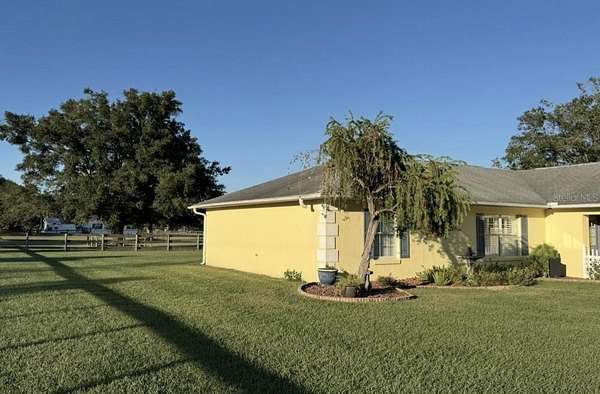 Leave the noise behind and step into a tranquil slice of Florida country living in the highly desirable community of Summerfield. This pristine, move-in ready 3BD/2BA home is nestled on three-acre fully fenced in parcel, offering privacy, and versatility. A solar/electric gate entrance sets the tone as you arrive at this peaceful retreat. Perfectly suited for equestrian enthusiasts, hobby farmers, or anyone craving space and freedom. The property features a massive 60x40 metal barn complete with water, electric, and 220/110 outlets. The thoughtfully cross-fenced acreage includes two existing horse stalls, a chicken coop, and ample open space ideal for livestock, gardening, or recreational vehicles. Inside, the home welcomes you with sun-filled open living spaces, enhanced by fresh neutral finishes. a thoughtfully designed floorplan for both comfortable daily living and effortless entertaining. Every inch of this meticulously maintained home reflects careful pride of ownership and quality upgrades, offering peace of mind to the next owner. Enjoy the calm and beauty of rural surroundings while remaining just minutes from shopping, dining, healthcare, recreation, and the Villages, providing the perfect balance of seclusion and convenience. Recent notable upgrades and improvements. (2018) entire home, all new plumbing, water softener system installed, hot water heater replaced, hot water access outside. (2025) new HVAC system install, all air ducts replaced and updated, ceilings updated throughout bedrooms, living room, kitchen, and dining room, fresh interior paint in designer inspired neutral tones, and stylish urban farmhouse lighting fixtures. Whether you're looking to establish a homestead, downshift into a slower pace of life, or secure a private country retreat, this exceptional property is truly ready to welcome you home. Schedule your private showing today and experience firsthand the comfort, peacefulness, and quiet lifesytle this hidden country oasis has to showcase.