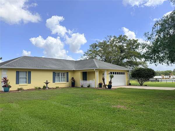 Leave the noise behind and step into a tranquil slice of Florida country living in the highly desirable community of Summerfield. This pristine, move-in ready 3BD/2BA home s nestled on three-acre fully fenced in parcel, offering privacy, and versatility. A solar/electric gate entrance sets the tone as you arrive at this peaceful mini-farm retreat. Perfectly suited for equestrian enthusiasts, hobby farmers, or anyone craving space and freedom. The property features a massive 60x40 metal barn complete with water, electric, and 220/110 outlets. The thoughtfully cross-fenced acreage includes two existing horse stalls, a chicken coop, and ample open space ideal for livestock, gardening, or recreational vehicles. Inside, the home welcomes you with sun-filled open living spaces, enhanced by fresh neutral finishes. a thoughtfully designed floorplan for both comfortable daily living and effortless entertaining. Every inch of this meticulously maintained home reflects careful pride of ownership and quality upgrades, offering peace of mind to the next owner. Enjoy the calm and beauty of rural surroundings while remaining just minutes from shopping, dining, healthcare, recreation, and the Villages, providing the perfect balance of seclusion and convenience. Recent notable upgrades and improvements. (2018) entire home, all new plumbing, water softener system installed, hot water heater replaced, hot water access outside. (2025) new HVAC system install, all air ducts replaced and updated, ceilings updated throughout bedrooms, living room, kitchen, and dining room, fresh interior paint in designer inspired neutral tones, and stylish urban farmhouse lighting fixtures. Whether you're looking to establish a homestead, downshift into a slower pace of life, or secure a private country retreat, this exceptional property is truly ready to welcome you home. Schedule your private showing today and experience firsthand the comfort, peacefulness, and quiet lifesytle this hidden country oasis has to showcase.