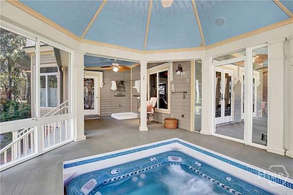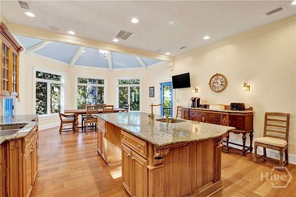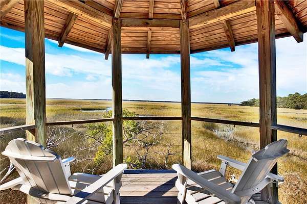 Enjoy the epitome of Lowcountry luxury in this stunning private estate, gracefully positioned on 7.42 acres of high ground overlooking the tranquil marshes and Medway River, offering exclusive nightly sunsets that transform the horizon into a masterpiece of color. Thoughtfully designed and custom built with exquisite attention to detail, this two-story home and accompanying carriage house combine elegance, comfort, and functionality in one exceptional property. The main residence showcases timeless craftsmanship with Hardie Plank siding, hardwood and ceramic tile flooring, and refined millwork throughout. The interior offers inviting spaces anchored by both indoor and outdoor fireplaces, enhancing the warmth of the great room and rear porch. All three upstairs bedrooms feature their own en suite bathrooms, providing ideal privacy and comfort for family or guests. The expansive primary suite is a true retreat, featuring separate his-and-hers vanities, a luxurious whirlpool tub, and a glass-enclosed sauna that opens directly to the porch-perfect for relaxing while taking in the serene marsh and river views. A detached carriage house provides additional versatility, featuring a 1,500 sq ft heated and cooled garage with a half bath and a private, fully equipped second-floor studio apartment complete with a full kitchen and bath-ideal for guests, multigenerational living, or rental use. In total, the estate offers six garage spaces, providing exceptional accommodation for vehicles, equipment, or a refined collector's storage. Every element of this estate has been carefully considered to provide both beauty and functionality. The property includes a multi-zoned HVAC systems, 7-zone Rain Bird irrigation, extensive security system with intrusion, fire, smoke, and carbon dioxide sensors, and an 800 amp main service panel. Additional highlights include a 30 kW Baldor standby generator with automatic transfer switching, an instant hot water circulation system, RealCraft power-swing garage door opener, and a driveway alarm system. Outdoor living is just as impressive, with a covered second-floor porch offering a spectacular view of the forest, marsh, and river, and a paver-stone patio below designed for grilling and entertaining. The home is surrounded by majestic oaks, magnolias, and palms, creating a peaceful, natural setting that feels like a private sanctuary. With a new roof on both the main house and carriage house (2025) and a new well pump and updated electrical systems, this elevated estate offers peace of mind and modern reliability. Located on a quiet, private lane just minutes from the best of Richmond Hill, 331 Silver Stream Lane delivers the perfect blend of refined living, timeless craftsmanship, and natural beauty.