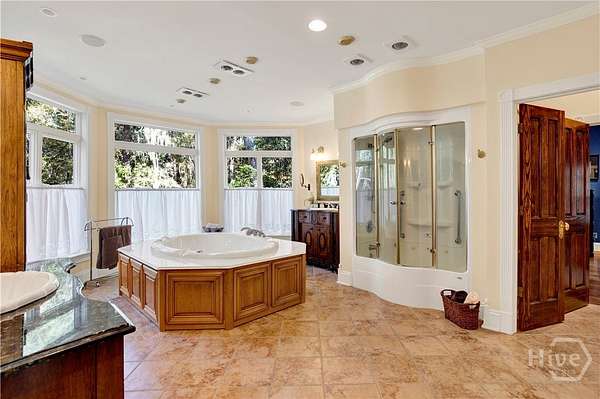 - Attic, Breakfast Area, Butler's Pantry, Double Vanity, Entrance Foyer, Garden Tub/Roman Tub, Gourmet Kitchen, High Ceilings, Jetted Tub, Kitchen Island, Pantry, Primary Suite, Recessed Lighting, Separate Shower