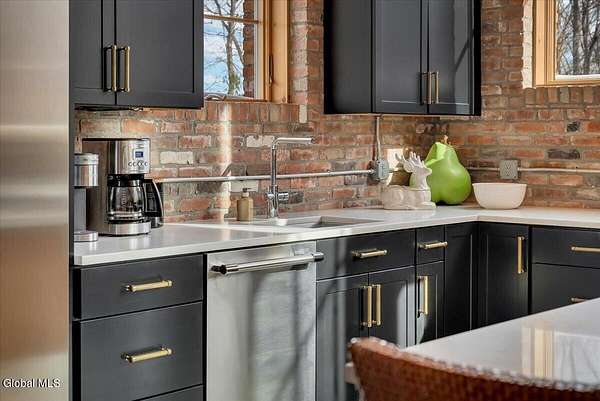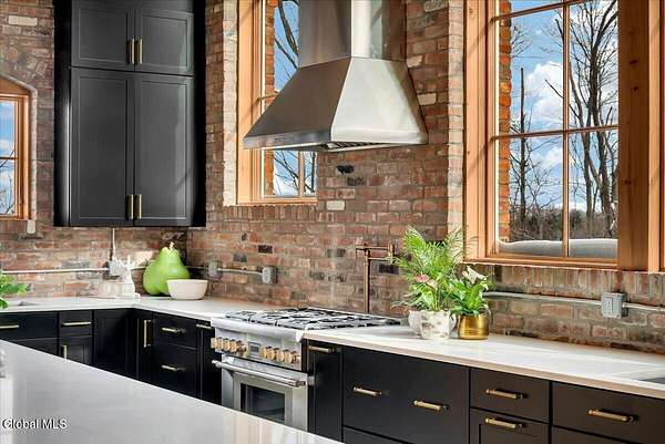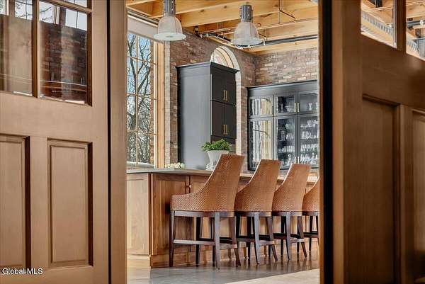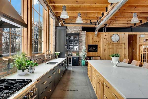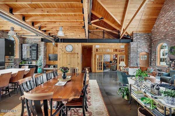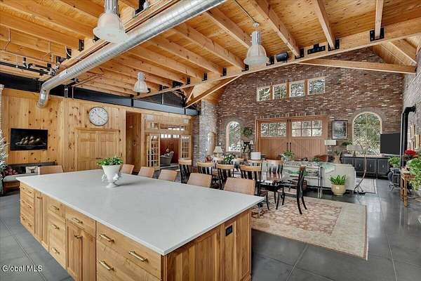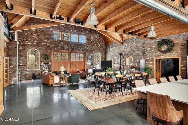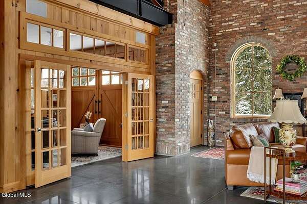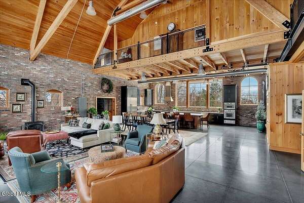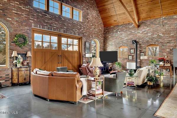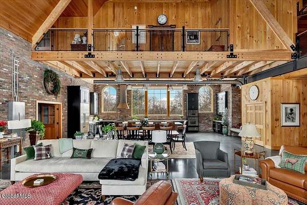 Experience unparalleled living and bespoke craftsmanship in this breathtaking and superbly designed luxury estate home. The most rare and one-of-a-kind jaw-dropping custom home with a seamless blend of natural stone, brick, wood, metal and modern luxury awaits the most discerning buyer. Featuring exquisite custom details throughout the expansive and open 3 levels of 6,000+/- sf with a casual refined feel. Massive great room with soaring ceiling, beautiful beam work, custom imported brick walls and architectural windows and carriage doors wows guests. Opens to a spacious dining area and fabulous gourmet kitchen with all the bells and whistles, including a 14 foot island. A gourmet chef's dream with a multitude of specialty appliances. Cozy den/office with French doors and tongue and groove wood walls. 2 roomy main floor bedrooms and full hall bath with designer fixtures and double vanity add to the convenience factor. Striking silo spiral staircase connects the main level to lower and upper levels. Ascending the custom staircase to a loft which overlooks the great room. Secluded and serene primary suite with sitting area, dramatic Palladian-style window, exposed brick wall and skylight. Primary bath with skylight and marble shower. 2 walk in closets. Secret passage to hidden loft area. Walkout lower level is an entertainer's dream. A true chef's kitchen with an industrial vibe and featuring 9 appliances. Opens to the family room and exercise room with 4 person sauna. Full bath. Utility/laundry room. Two cedar lined closets. Sliding doors open to pickle ball court, bocce court, outdoor kitchen and secluded backyard. Spectacular sunrises and amazing mountain views. Whole house custom sound system. Too many additional features to list. Superior construction. Set on 3.5+ lush landscaped acres. Imagine arriving home through your own private gate, winding up the drive to your new home. 331 Vly Road is not just a house-it's a lifestyle!