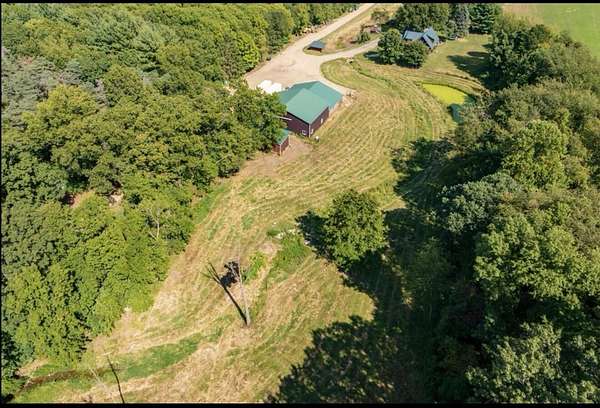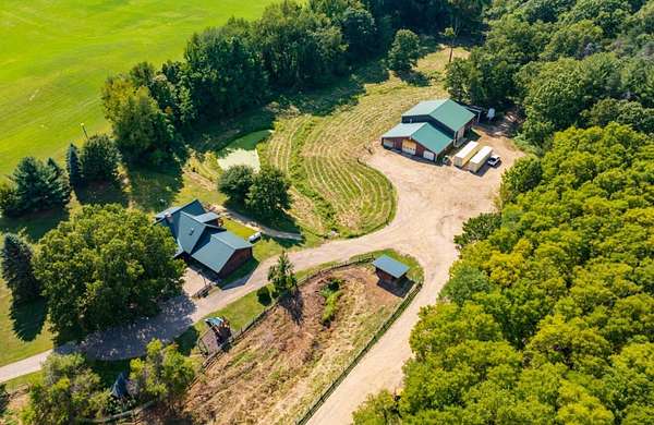 This property is a perfect lifestyle! Imagine living in a Red Pine log cabin where mornings are spent overlooking the ponds, evenings around a crackling fire, and weekends filled with trail walks or watching wildlife right from your deck. A peaceful retreat where your passions and hobbies all have room to grow In addition to this beautifully maintained 3-bed, 2-bath log home, it also includes 10 acres of farmable hay, making it ideal for agricultural use or income-producing potential. The horse pasture features a natural running stream, providing reliable water source for animals year-round. The 60x80 pole barn is fully operational. This space includes an office with a built-in propane fireplace, bathroom, shared space, on top of the four stalls of workspace. Already perfectly equipped for equipment storage, trades, small business operations, or hobby farming Outdoor enthusiasts will appreciate the trophy white-tail deer, and abundant wildlife throughout the 27-acre property