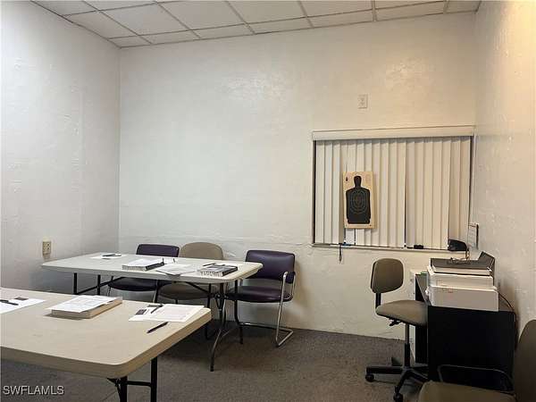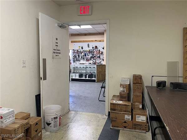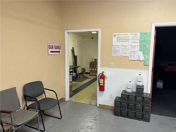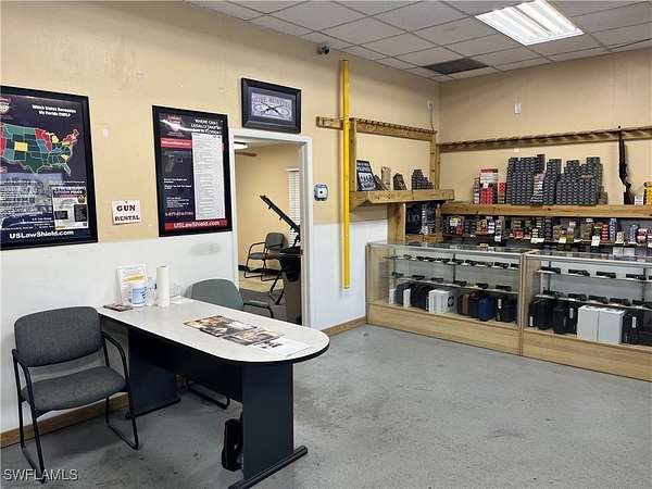 This 7,056 square foot building was built in 1982, made of CBS construction, and originally built as a duplex. The front portion of the building consisting of a firearms and security guard training center, retail shop, shooting range, 2 private offices, staging area and 3 restrooms. The rear section is an automotive repair business 20'X60' and mostly warehouse space with one overhead door and service bay with 1 restroom. Building is currently divided into 4 units, although the walls could be removed to create one open space for a single tenant or end user. With 1.7 acres of land, a concrete parking lot, fenced yard, CBS building, Hanson Street frontage, access to Metro, Fowler and US 41 to the west and minutes from Interstate 75 to the east, makes this conveniently located and unique property a perfect fit especially if the buyer conducts business within the tri-county area. A great contender for many industrial and retail type uses and located within the City limits of Fort Myers.