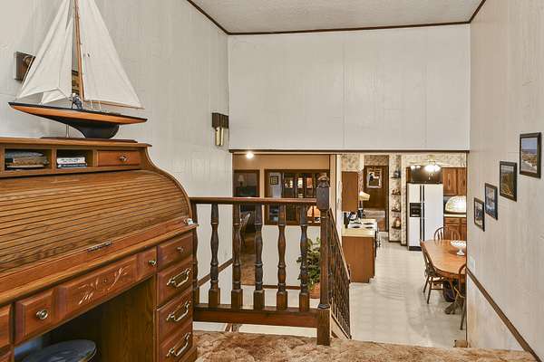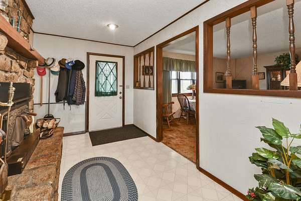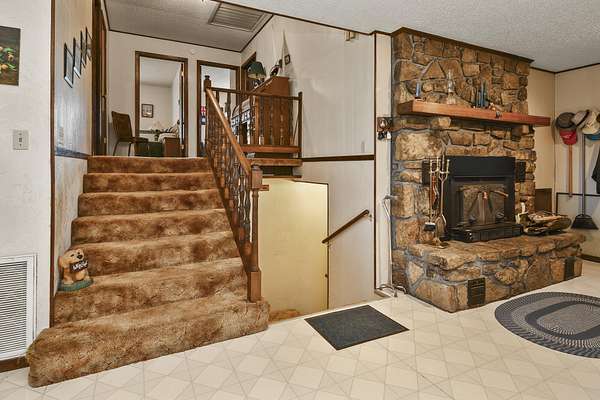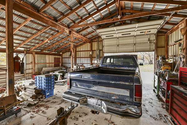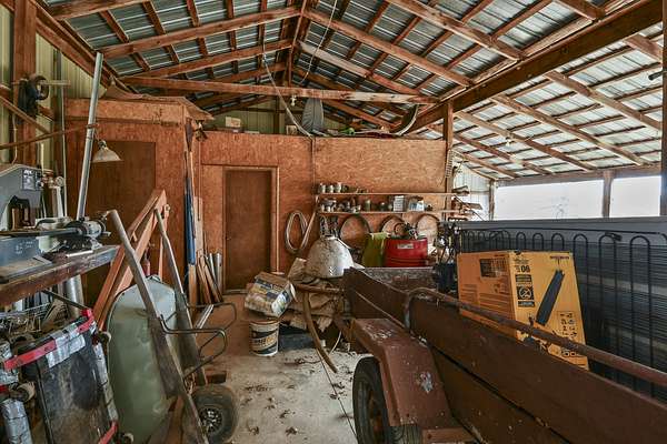 Discover the potential of this spacious split-level home set on cattle-tight acreage along a paved country road. This well-loved property offers generous living spaces and room to make it your own. The main level features a living room and family room, with wood burning fireplaces, providing plenty of space for gathering or quiet relaxation. The primary bedroom with en suite and laundry room are conveniently located on the main level, while three additional bedrooms and a full bath sit on the opposite side of the home, offering privacy and a comfortable layout for families or guests. A 2-car basement garage provides easy parking and additional storage. A versatile 31'x50' shop includes a workshop area at the back, bathroom, and an open lean-to along the side--perfect for equipment, projects, or additional covered storage. With its peaceful setting and functional outbuilding, this property offers a fantastic opportunity for those seeking country living with room to grow, update, and make it their own. No building codes or restrictions!
