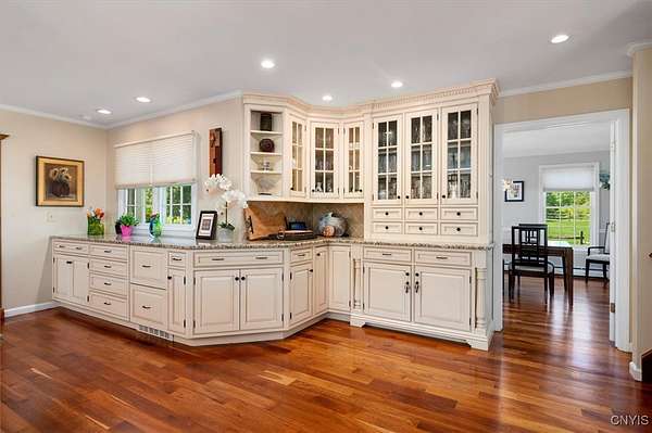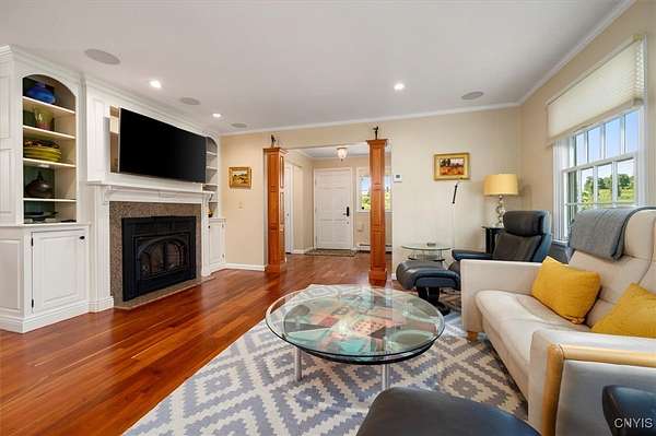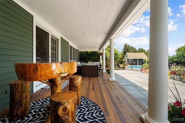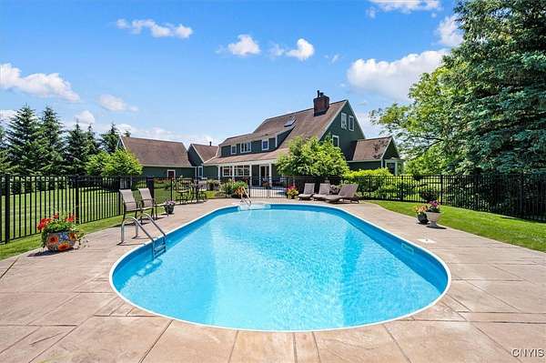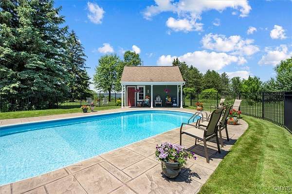 Prestigious Colonial Retreat in the Heart of Clinton, a one-of-a-kind Colonial estate nestled in the tranquil beauty of Clinton's peaceful countryside. This distinguished residence offers a blend of timeless elegance, luxurious finishes, and custom features designed for sophisticated living and grand entertaining. Step inside to discover a LARGE chef's kitchen featuring a center island, high-end appliances, rich cherry cabinetry, and architectural pillars. The formal library with custom-built-ins creates a warm, refined atmosphere ideal for quiet reflection or remote work. Throughout the home, you'll find premium cherry hardwoods and custom tile, showcasing impeccable craftsmanship. The primary suite is a true retreat, complete with a private study/studio, granite counters, and a tumbled marble spa-style shower: a third-floor guest suite and even a custom jazz club in the finished basement. Step out onto the covered porch, finished with high-end bamboo flooring, and take in views of your private resort-style oasis. The spectacular in-ground pool, pool house with half bath, and lush landscaping make this backyard feel like a year-round escape. With too many high-end amenities to list, this extraordinary home is truly a must-see. Whether you're seeking luxury, privacy, or a unique lifestyle experience, this Clinton estate delivers it all. Schedule your private showing today and experience the exceptional.