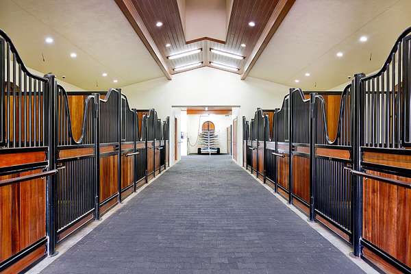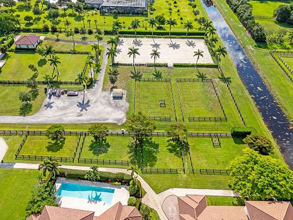 Incredible estate... everything you could want and more, only a short hack to the showgrounds. The property boasts a 14-stall CBS center aisle barn, a fantastic 2 bedroom, 2 bathroom staff apartment, rider's lounge/tack-room, office, kitchen/feed-room, full bath, laundry room and a storage room for hay & shavings. The facility has 8 grassy paddocks and 2 All Weather Arenas, one being a world-class Wordley Martin arena. (See MLS B26013990 if the 5 bed 5 bath pool home is needed). A unique opportunity to rent the one-of-a-kind grass field and track in the 10-acre horse park, affectionately called the ''Welly Horse Park'' directly across the street.