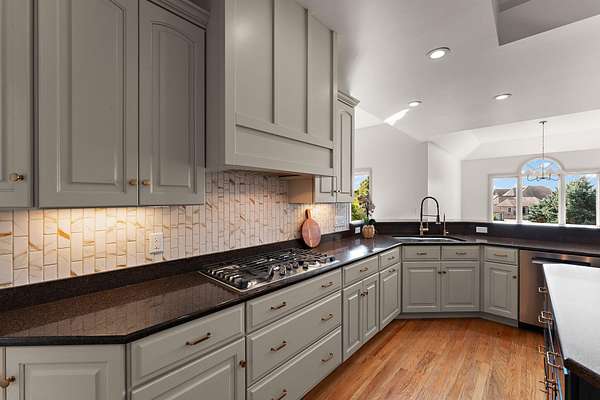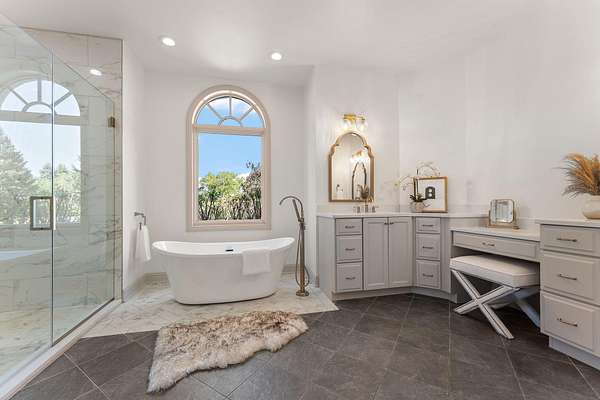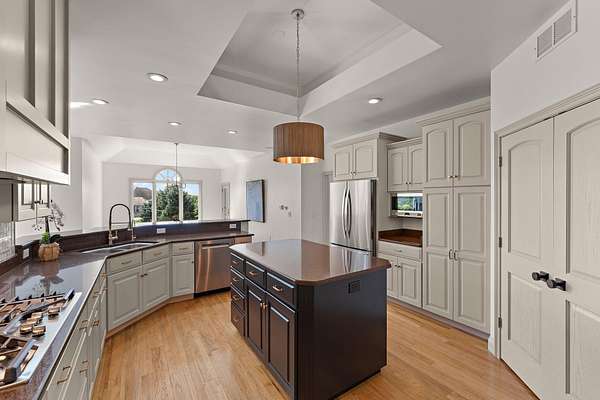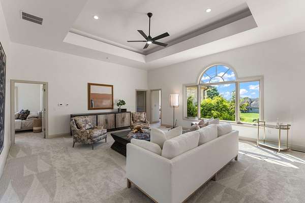 - Cathedral Ceiling(s), Ceiling Fan(s), Double Vanity, Entrance Foyer, High Ceilings, His and Hers Closets, In-Law Floorplan, Kitchen Island, Open Floorplan, Pantry, Recessed Lighting, Soaking Tub, Stone Counters, Tray Ceiling(s), Walk-In Closet(s)