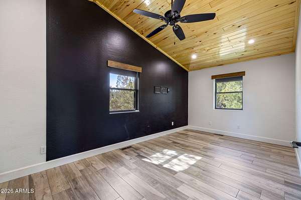 Experience mountain living at its finest with this magnificent retreat, perfect for part-time or full-time residence. This stunning home features ample room with 4 bedrooms & 3 baths. Enjoy granite counter tops, a large kitchen island, & modern amenities in your gourmet kitchen. The living Room & Loft offer flexible areas for a family room, game room, or additional entertainment space, complete with a walk-out deck. Your primary Bedroom is a true sanctuary located on the main floor, featuring expansive walk-in closets, a private office or dressing area, and a cozy fireplace. The 5 car garage has attached guest quarters with newly updated bathroom with shower. Fully fenced 1.48 acres. Square footage differs from county buyer to verify.