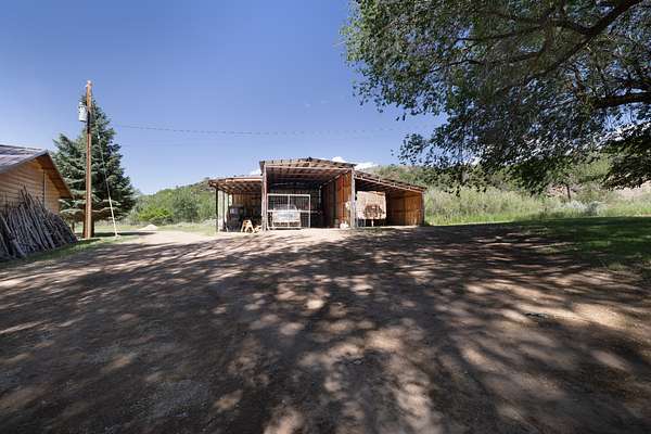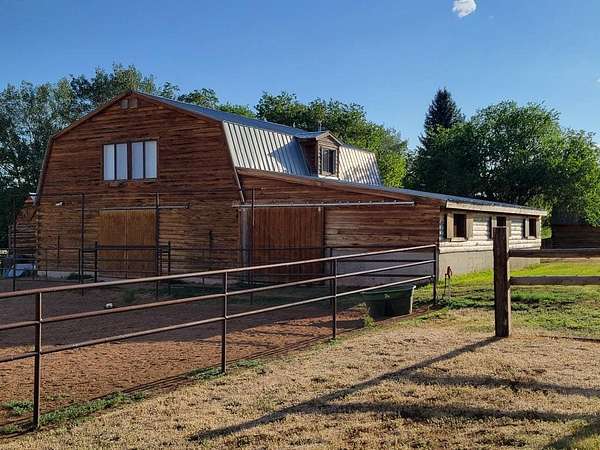 Above the barn is a three Bedroom Apartment with Living Room, full bath with shower. The Aspen wood vaulted ceilings in the living room and the main bedroom give the cabin a great western feel. The kitchen is well equipped with refrigerator, dishwasher, electric stove and laundry area.