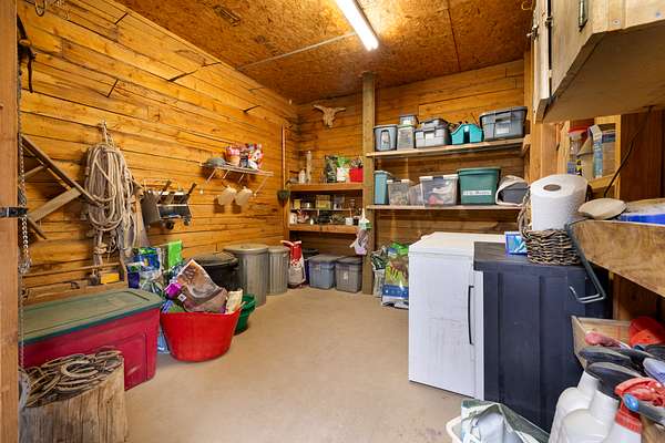 The barn corral and outdoor Riding/Roping Arena is pipe fenced, complete with WW team roping chute with return alley and holding pen. The footing is sand.