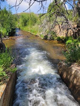 The main hay grounds are connected to the lower pastures, separated by the driveway and a planted row of wildlife habitat. Across the driveway is the other 40 acres which includes 25 acres of hay field, hay barn with storage area and a food storage building. They sit close to a running stream at the back of the property. This is a nice shady spot to camp or park an RV. There are three ponds below the hay field, overlooking a beautiful view of the mountains and property. This spot would make a great future building site.