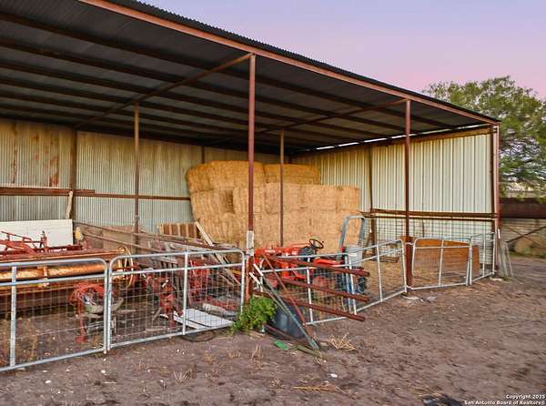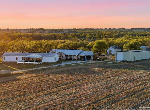 An exceptional 92.22 acre tract in the Greater San Antonio growth corridor offering a rare opportunity for investors, agricultural operators, or those seeking expansive land with long-term potential. The property features open pasture, mature trees, and natural water elements ideal for ranching, recreation, or future land investment. Located outside city limits (OCL) with an active agricultural valuation, it offers flexibility for various use options and potential future rezoning. Improvements include a small tank and multiple outbuildings, such as a 1,760 sq ft metal implement shed for tractors and equipment, open-face and enclosed hay barns, several sheds, and a carport. Two residences are located on-site: a 4-bedroom, 2.5 -bath manufactured home (2,128 sq. ft., built 2005) and an older 1940s home with restoration potential, providing space for on-site living or management. Livestock currently on the property may convey if purchased as a working farm or ranch. The tract includes portions within FEMA-designated floodplain, offering opportunities for natural open space, grazing, and water management within future land-use planning. The location offers rural privacy with convenient access to key destinations including Randolph Air Force Base, Joint Base San Antonio, and major employment corridors along I-10 and Loop 1604. Nearby amenities include retail and dining options in Converse, medical services at Methodist Hospital Northeast and Baptist Emergency Hospital, and a range of recreation such as golf courses, local parks, and walking trails. Served by East Central ISD with additional nearby private and charter school options. Whether envisioned as a working ranch, long-term investment, or future redevelopment opportunity, this versatile property combines size, accessibility, and enduring value within one of Bexar County's most active and desirable growth areas.