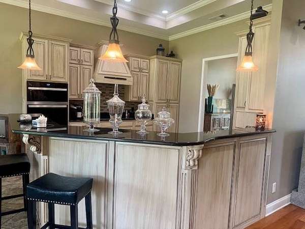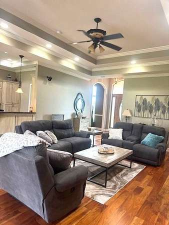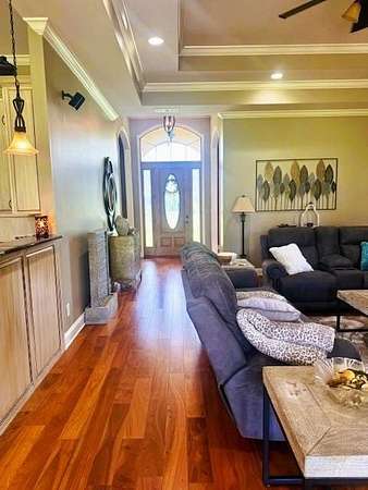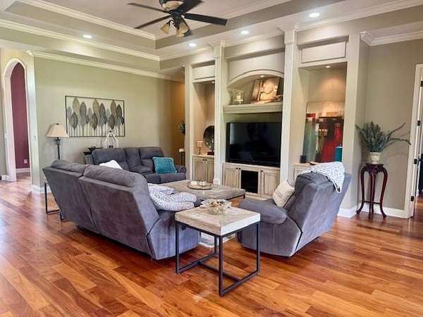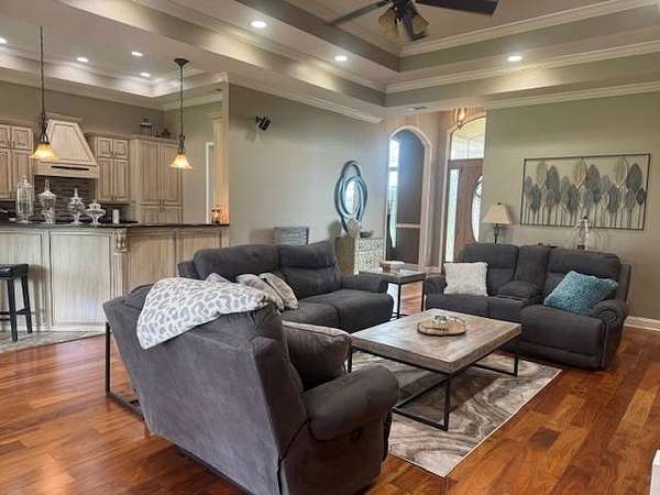 Prime Location & Beautiful Home located across from Piggott's Beautiful Heritage Park with amazing scenic views. This Custom-Built Home is situated on 10 Acres of well maintained & manicured lawn, with a One Acre Stocked Pond (25' deep), fertilized Pasture, Hay Meadow, Built-in Garden, Front Yard Watering System and Fully Landscaped. Built in 2012 by Jim Crittenden, this 4 Bedroom, 2.5 Bath (1-Jack n' Jill) offers 2,739 Square Feet of Heated and Cooled Living Space, 3,929 Square Feet Under Roof. All thoughtfully designed in a Scenic, Quiet Neighborhood on 2 Dead End Roads. Step inside to Ceilings 12' to 16' tall with recessed lights and crown molding. Hardwood flooring throughout, River Tile and Double Pane Windows plus 8 Foot interior Doors throughout. Upon entering the Foyer - on one side is the Formal Living Room with gas log fireplace and on the opposite side is the Formal Dining Room with doorway to kitchen - Both Living Room and Dining Room feature scenic views of the built-in Garden, Front Yard with watering system and fully landscaped. Powder room is conveniently located down hallway from Family Room and next to an additional bedroom with full scenic view overlooking scenic front lawn. The spacious open concept of the Family Room and Kitchen with custom built cabinetry and Granite Counter Tops along with Glass Patio Doors, Breakfast table located with Bay Window ALL looking over the large, open, covered patio with scenic tree lined, countryside view. Kitchen appliances include Built -In Convection Air Fryer Oven and Microwave, Counter Cook Top, Double Wide Refrigerator & Freezer and Dishwasher. The spacious Master Bedroom Suite also has glass patio doors leading out to the covered patio, Master Bath features River Tiled Walk-In Seated Shower, Hot Tub, Walk-In Closet, and custom-built vanity and cabinetry The nice size 3rd and 4th bedroom both have oversized closets with the Full-size Jack n' Jill Bathroom with full size tub/shower combination and large vanity. The Laundry Room is located off the kitchen with Storage and Pantry Closets, Freezer, Washer and Dryer Area and doorway out to the Double Garage with additional Storage. The covered patio is the excellent place for entertainment, relaxation with Built-In Lights, Ceiling Fans, Speakers. Built-In Surround Sound and 8-foot French Doors; The Exterior is EIFS System with Low Energy Costs; 3 Central Heat (gas) and Air Units; 2 Tankless Water Heaters; Full Walk-in Attic; City Utilities and Septic System. Plus - Lighted Shop Building with overhead door, Windows and Covered Car Port.