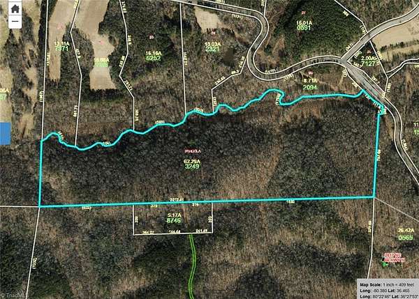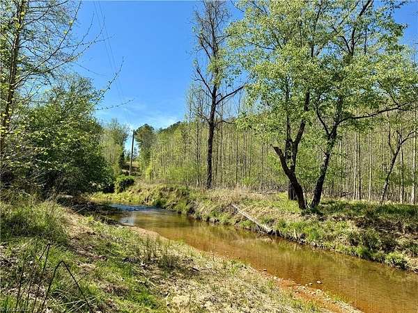 62.29 unrestricted acres in Stokes County, North Carolina, featuring 75+ yr old mature hardwood timber worth $150,000+, 12+/- acres of flat topography next to stream, 3,300+ feet of large stream frontage, paved, low-traffic state road frontage. Power and fiber internet are located along State road. A recent soils evaluation identified soils suitable for septc. Low county property taxes enrolled in PUV transferable to new owner. Additional 8.7 acre lot #5 available for sale. Located 17 minutes from Pilot Mountain, 25 minutes from Mount Airy, 19 minutes to Hanging Rock State Park, and 21 minutes to Pilot Mountain State Park, this property offers rural serenity without sacrificing access to modern conveniences. Ideal for those seeking a country homestead, mini-farm, or investment in the heart of North Carolina's foothills. Visit the listing agent's website for more information, to access attachments, view an interactive map, and watch the video tour.