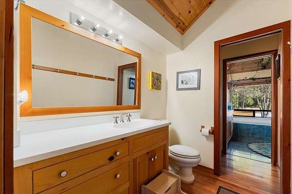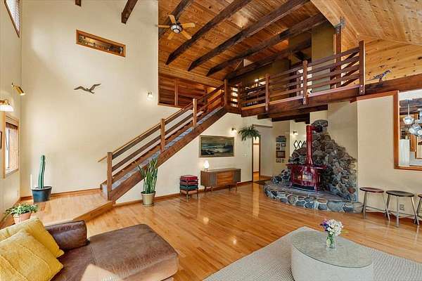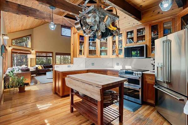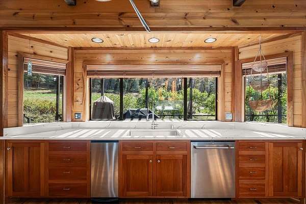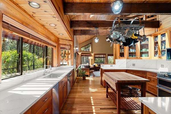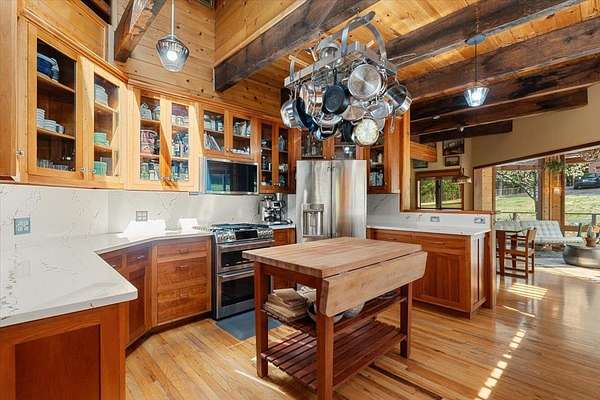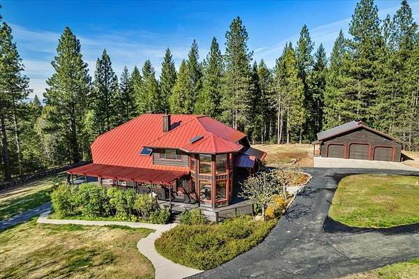 Welcome to Lost Creek, an exceptional mountain estate set on 20 private acres. This stunning retreat features miles of improved trails and a year-round creek. Enjoy two fully fenced acres with a sprawling lawn and native landscaping, a 50x50 garden with deer fencing and irrigation, and a custom playhouse. A paved circular driveway, two electronic entrance gates, and a whole-house generator provide convenience and peace of mind. A custom 500 sq ft ADU, additional garage space, and a large dog kennel complete the exterior. The spacious 4 bedroom (+ office)/ 3.5 bath home includes a large upstairs primary suite with a cedar walk-in closet and sun-filled alcove. Solid oak floors throughout are complemented by tongue and groove ceilings, 2 skylights, high-end window blinds, tons of storage and a basement workshop. The modern kitchen features new quartz countertops (also in the laundry) and GE Café appliances. Enjoy year-round comfort with central heating and cooling, plus a Vermont Castings wood stove in the dramatic living room. The cedar home is crowned by a vibrant new red metal roof. This ultra private showcase property feels worlds away, yet is a short drive to town. A must-see!