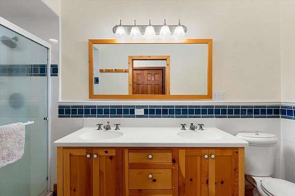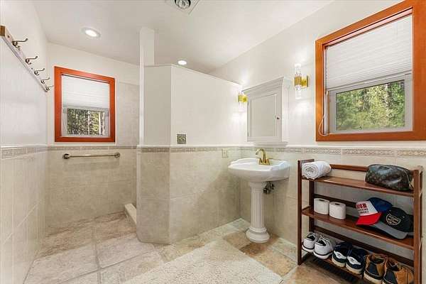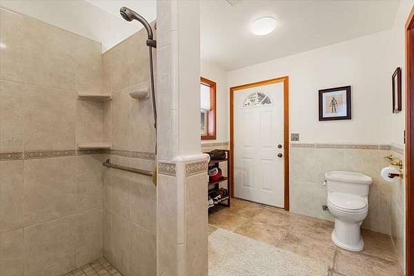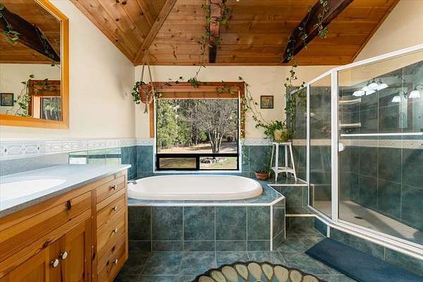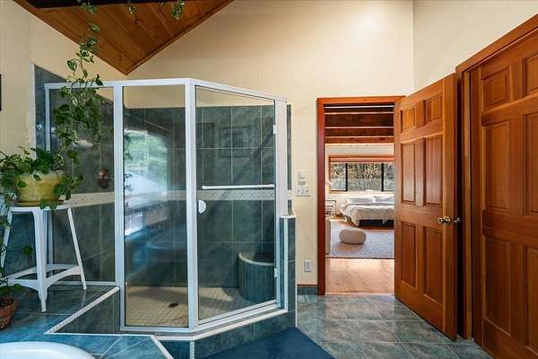 - Custom Cabinets, Double Sink, Jet Tub, Kitchen Island, Shower Enclosure, Skylight, Tile Counters, Tile Enclosure, Tile Floors, Tub/Shower Enclosure, Vaulted Ceilings, Walk-In Closet