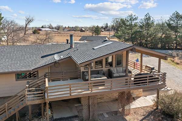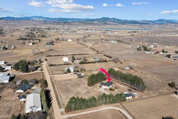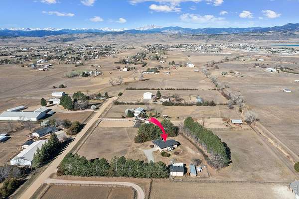 Peace & quiet await at this special place in the country, yet just 10 minutes to Berthoud, Longmont or Loveland. Lots of space across 4.47/acres with just about 3000sf and spaces for everyone and a great layout for home offices, hobbies, studio space and more. Beautifully updated kitchen features stone counters, custom cabinetry, new lightling, gas cooktop and stainless-slate appliances. Vaulted greatroom with wood-burning fireplace and beautiful mountain views. 6 bedrooms provide room for everyone plus there are three newly updated baths. Central air and radon mitigation system already in-place. Attached 2-bay garage plus huge 20x30 detached, heated shop, chicken coops, and space for animals and play, with lots of pine trees for extra privacy. Great view of Longs Peak and front range mountains! The ideal hobby farm and just a great place to call home. No HOA and includes 1-share of Dry Creek Lateral Ditch company water. Offered below appraisal and move-in ready at $949,000. Let's explore today!