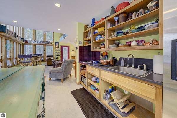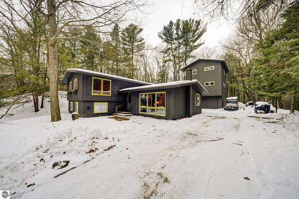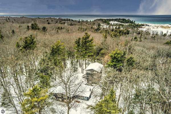 Tucked away in a quiet, natural setting just north of Frankfort and south of the world-renowned Crystal Downs Golf Course, this parcel offers rare privacy with The Nature Conservancy protecting the land to both the north and south. Experience Northern Michigan living at its finest with this unique property featuring a spacious 2,232 sq. ft. main home and a charming 1,012 sq. ft. guest house (10-030-042-00) and a second property with 165 ft. of private Lake Michigan frontage with pristine sandy shoreline, and breathtaking sunsets (10-030-033-00). The main house offers 5 bedrooms and 2 bathrooms, combining comfort and functionality for year-round or seasonal living. The guest house includes 1 bedroom and 1 bathroom, offering privacy and flexibility for hosting. Close to Crystal Lake, Platte Lake, and the Platte River, you'll have easy access to prime canoeing, kayaking, and outdoor recreation. A wonderful opportunity in one of Northern Michigan's most desirable locations. A remarkable opportunity to own a piece of one of Michigan's most coveted coastlines. Preliminary sketch completed by Sarah Keever for potential buildable area on the waterfront parcel.