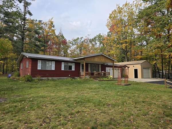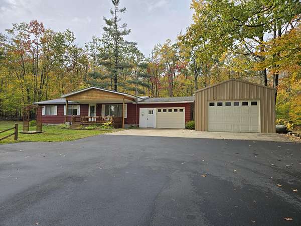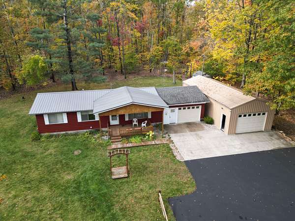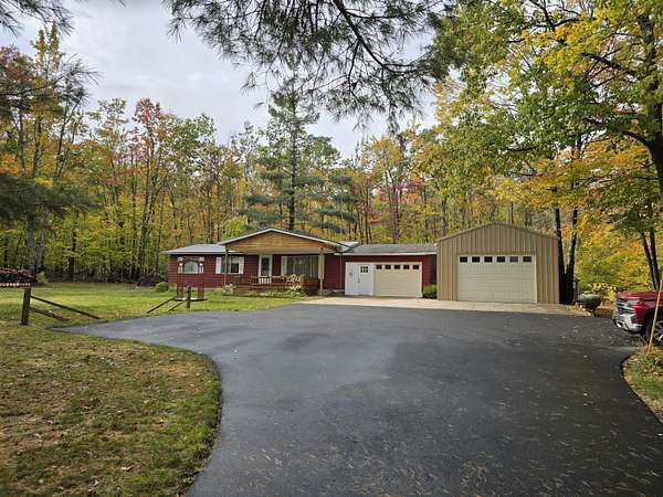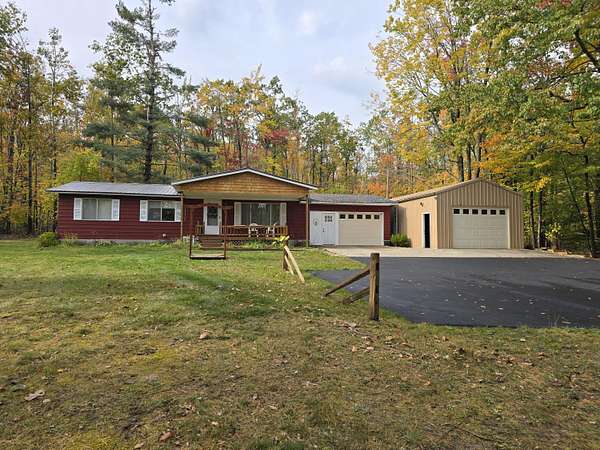 Tucked away in a peaceful neighborhood between Burt and Mullett Lake, this charming three-bedroom, 1.5-bath ranch offers the perfect blend of comfort and nature. Situated on 5 acres of stunning hardwoods, you can even pick morels right in your own front yard! Ideal for outdoor enthusiasts, the property adjoins the Little Traverse Conservancy's Melvin Family professionally built Hiking and Biking Trails, ideal for the mountain biking enthusiast. The 2 car attached garage and the 18'x45' steel storage building is perfect for storing all of the ''Up North'' gear. There is even a driveway for your RV complete with an electric box. The many updates are apparent including a paved driveway, composite front porch, and metal roof. This is the perfect home for a local resident or a vacation getaway