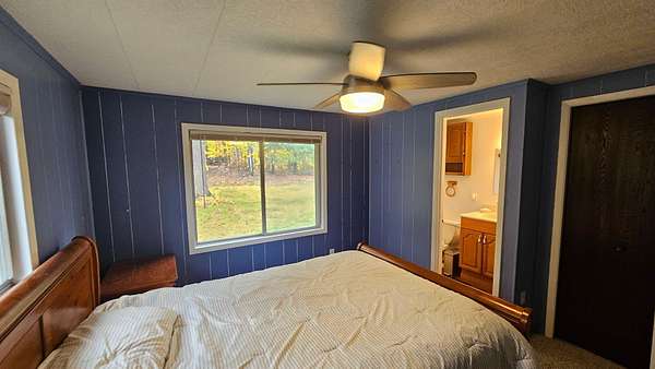 From Topinabee, north on Bennett Rd 1.7 miles to home on the left.