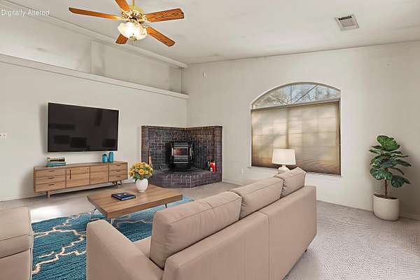 Welcome to this spacious 4-bedroom, 2-bathroom home offering 1,914 sq ft of living space on a flat, usable 4.8-acre parcel. Step inside to a welcoming living room with vaulted ceilings and a cozy pellet stove, creating a warm and open atmosphere. The property features mature trees and offers ample space for gardening, outdoor projects, or simply enjoying the peaceful surroundings. Fully fenced around the perimeter, the land is well-suited for animals and hobby farming. Enjoy the feeling of seclusion while still being conveniently close to a main road for easy access. With room to personalize both the home and the grounds, this property is a wonderful opportunity to create a space that truly fits your vision.