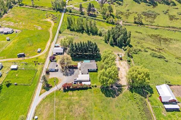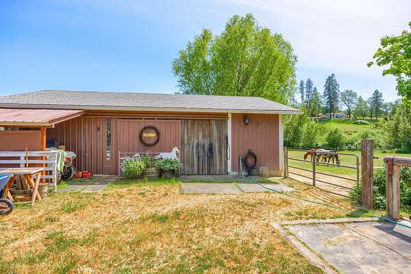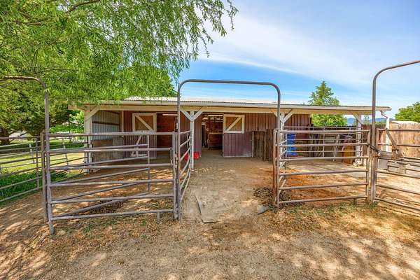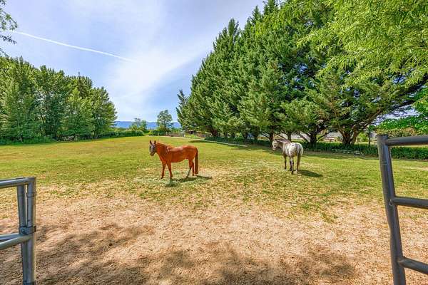 Welcome home to your ranch and tranquil setting, bring your animals and family. Beautiful setting with emerald green pastures 2 barns with stalls, tack room, hay storage, shop, paddocks and turnouts a 62X130 arena, 30X30 dry lot pen. Charming well maintained ranch home blends comfort and convenience spacious kitchen offers ample cabinet storage making it both functional and practical and functional for everyday living and entertaining. It offers an inviting family room with a cozy wood stove. 3 bedrooms 2 baths with a huge Bonus room provides endless possibilities for a media room, home gym. Features guest home 1 bedroom 1 bath warm and cozy. 2 car attached garage 24X32 RV cover with electric hookups. Features New Roof in 2025, new water heater 2024, flood irrigation, gated entry, seller says excellent well. Just minutes from town and conveniences. District 7. Make your appointment today before it is gone too much to list.
