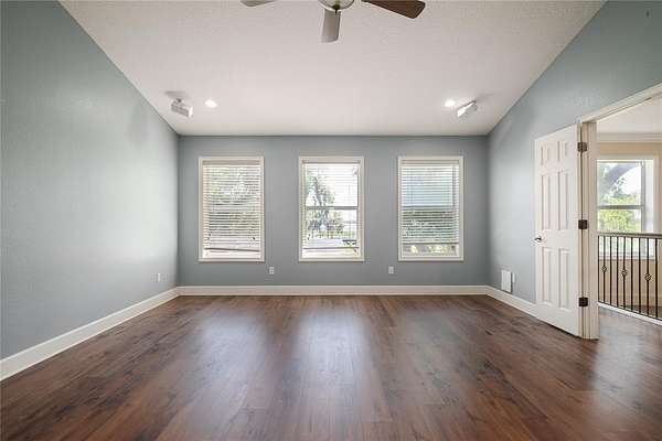 The owner’s suite is a secluded haven with commanding water views, a spa-inspired bath, and custom walk-in closet. An adjoining flex space is ideal for a private office, studio, or lounge.