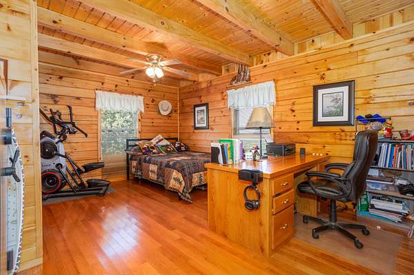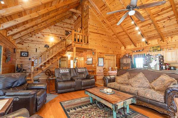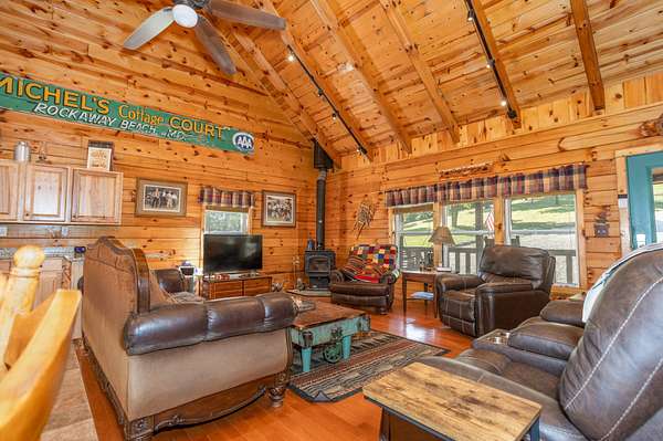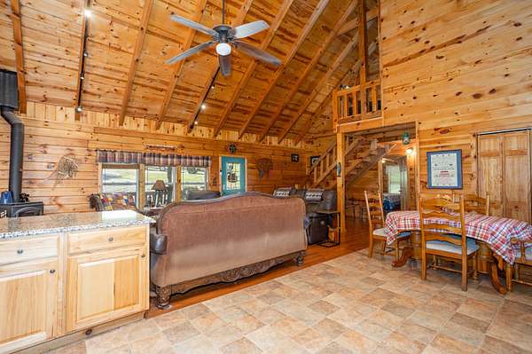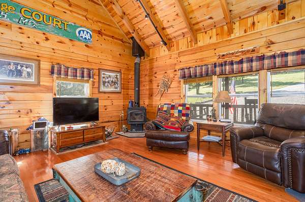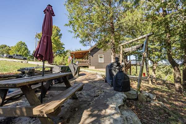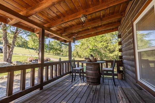 This 1,705 sq. ft. log home sits on 35 private acres and borders Mark Twain National Forest, giving you direct access to thousands of additional acres for hunting. The land offers excellent deer and turkey hunting, and the setting is quiet, scenic, and truly secluded.