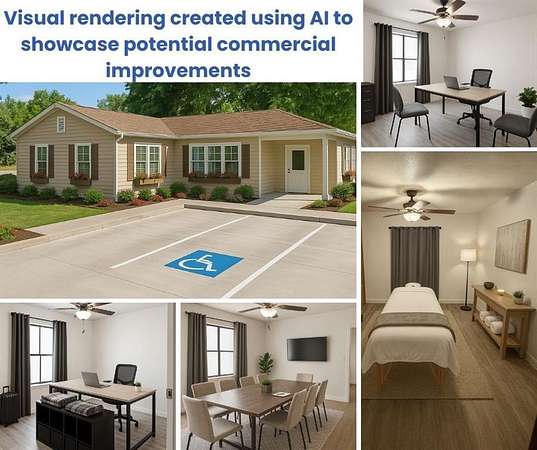 The building has potential for at least four office spaces, a waiting area, full kitchen, and full bath--all with central heat and air. There's also room to expand parking to suit your needs.
