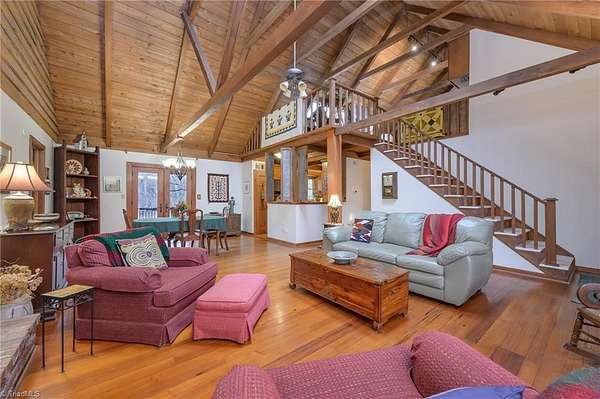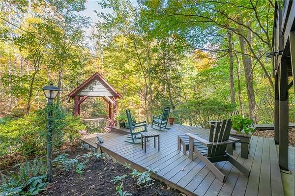 Have you dreamt of owning a gorgeous cabin in the woods-pond included-while still living 15 min from downtown W-S? Discover this gem: 4.45 acres of natural beauty, utter privacy & a comfortable, updated cozy cabin lifestyle! Enjoy all seasons from the rocking chair front porch, decks & gazebo that overlook the quaint pond. Meander the many paths, plant a garden, utilize the barn or swing by the water. Inside, find a grand living room w/2-story cathedral ceiling, exposed beams, skylights & gas FP. Kitchen renovated w/attention to detail from the corrugated tin shutters to the timeless granite counters, upgraded cabinets & SS appliances. Primary suite boasts huge walk-in closet & bath w/sep shower & tub. Convenient ML laundry & mudroom. Cozy sunroom. Loft ideal for office, crafting or play. Huge basement w/2nd living area-large enough for multiple uses. 2nd full bed & bath, huge windows & patio access make this level delightful. A beautiful blend of house & nature that is one-of-a-kind.