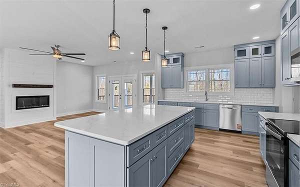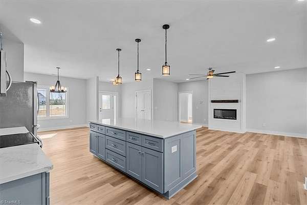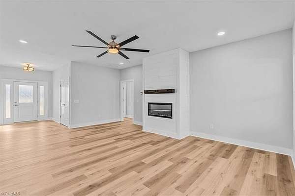 Nestled in a quiet cul-de-sac on over 2.3 acres of serene land, this newly constructed 4-bedroom home offers the ultimate in one-level living. Designed for both comfort and style, the home features 9' ceilings, a beautiful open kitchen with light hickory-look flooring, complemented by an inviting electric fireplace with shiplap in the living area. A spacious bonus room provides flexibility for a home office, media room, or playroom. Large primary w/freestanding tub, dbl vanity and sep shower! Huge primary closet. Great sized laundry room and half bath off kitchen! With a 3-zone heat pump for year-round comfort, fiberglass-blown attic insulation, and a 4-bedroom septic, no detail has been overlooked. The maintenance-free vinyl and brick exterior ensures lasting beauty, while the stamped concrete front porch and ScreenEze system screened porch offer the perfect spots to unwind. A convenient parking pad and ample outdoor space complete this exceptional offering. This is a must see!