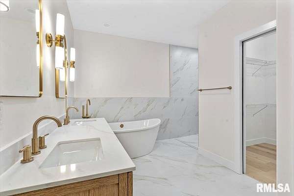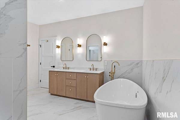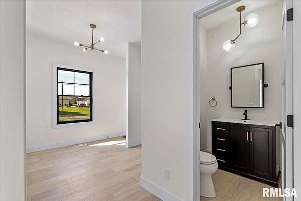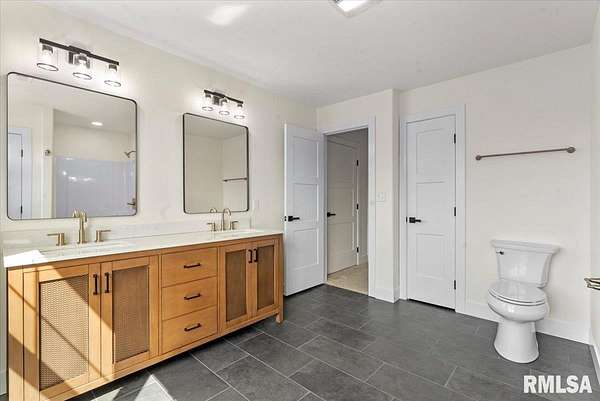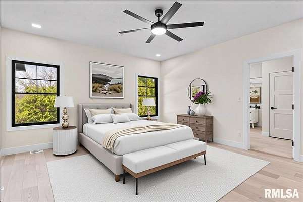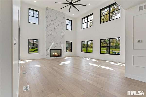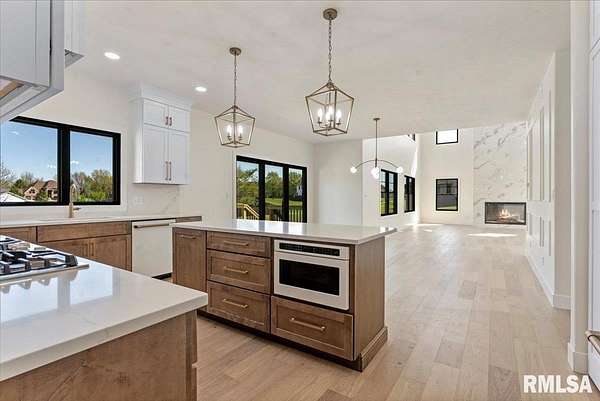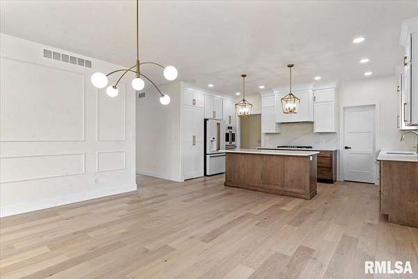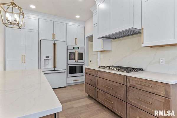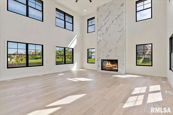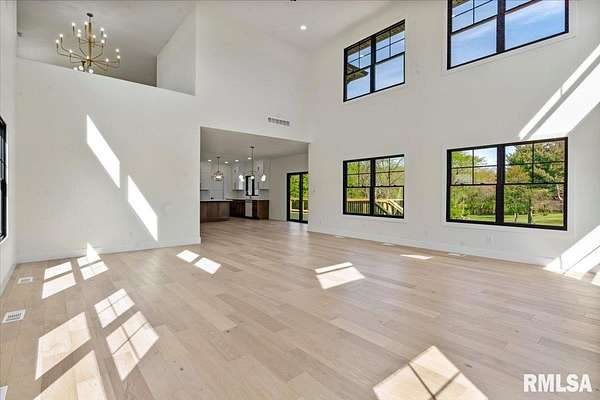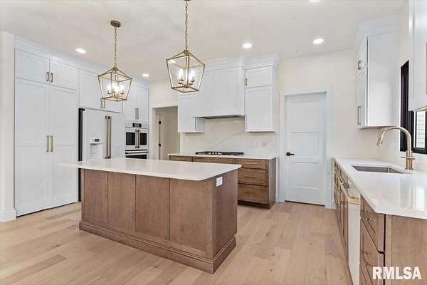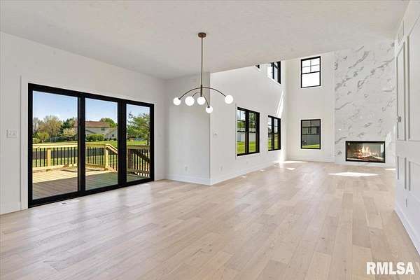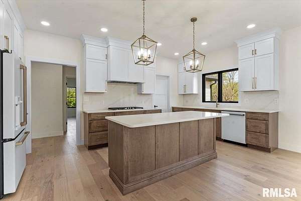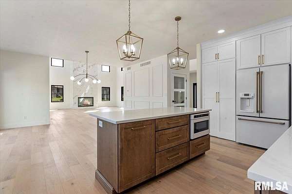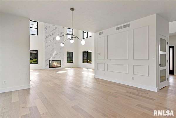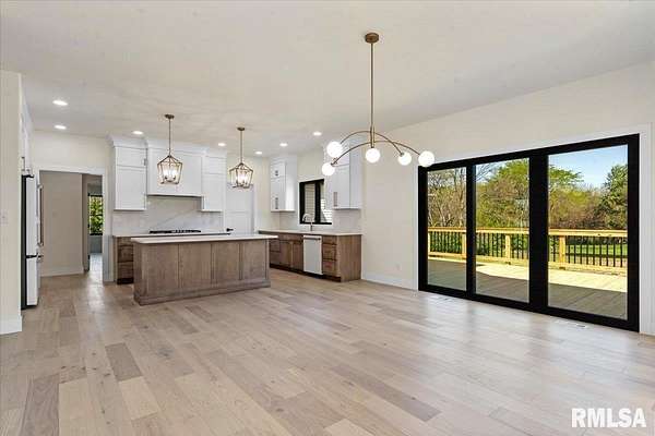 New construction 1.5 story home on 1.74 acres offers 5500+ finished sq. ft. This is a "must see" offering 5 bedrooms, 4.5 baths. Beautiful finishes throughout. "TWO," primary suites, one on the mail level and the upper level. Custom Sablontny cabinetry, Cafe Series appliances, double oven, 2 walk-in pantries, one hidden! Large island w/ Quartz countertops. Enjoy outdoor living from the main level to the spacious deck. Light and airy 2 story great room with a soaring marble look fireplace. Main level primary suite boasts 2 walk-in closets, a spa like bath, a walk-in tile shower featuring dual shower systems, soaker tub w/ champagne bronze finishes. Pella windows, black on both the interior and exterior. The partially finished basement included daylight windows, a spacious family room with the 5th bedroom and full bath. Some interior pics have been virtually staged. All measurements and information deemed accurate, not warranted.