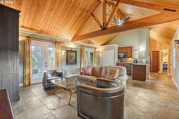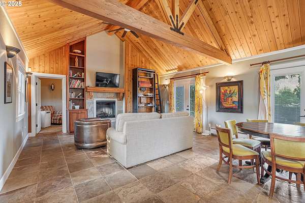 Nestled in the Chehalem Mountains AVA on 10+ acres, this versatile estate offers privacy, views, and strong income potential just minutes from Newberg and Willamette Valley wine country. The property includes a 3 bed, 3 bath main home and a detached 2 bed, 1.5 bath guest house. The pool house is currently being converted into a third self-contained residence with kitchenette, living area, and bedroom-scheduled for completion prior to summer-adding even more flexibility for multi-generational living or rental use. Outdoor amenities include a pool, wraparound covered patio, multiple decks, and landscaped grounds ideal for entertaining. A successful short-term rental with strong history, this property offers immediate income potential along with options for retreats, events, or boutique hospitality. Approximately 4.5 south-facing acres are well-suited for vineyard development. Additional features include a shop, basketball half-court, marketable timber, and ample parking. A rare opportunity for investors, multi-generational living, or those seeking a wine country lifestyle.
