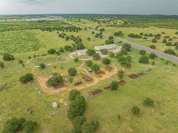 Exceptional Commercial Property on 6 Acres - Prime HWY 180 Frontage. A rare opportunity to own one of the most unique and versatile commercial properties in the Breckenridge area. Located just outside city limits with high visibility and easy access on US Highway 180, this 6-acre property is fully fenced with high-security perimeter fencing and offers endless potential. The main building includes approximately 4,500 sq ft of warehouse space with an attached 1,800 sq ft of high-end executive office space. The office area features five private offices with built-in cabinetry and separate his-and-hers restrooms. Covered parking at the front of the building, approx. 1,000 sq ft, offers convenient and shaded access for staff or clients. The insulated warehouse features 14' ceilings, an overhead door, two electric overhead hoists, and additional office or workspace options. Toward the rear of the property, an additional 1,800 sq ft warehouse includes a large sliding door on the south end and a roll-up door on the north for drive-through access. The building is equipped with an electric overhead hoist and overhead propane heating. An adjacent 1,100 sq ft open-air, concrete-floored bay with a metal roof provides ideal storage for heavy equipment. The land is dotted with mature oak trees and includes a potential build site tucked away at the back of the property--perfect for future expansion or residential use. Whether you're seeking a hub for industrial operations, a headquarters for a growing business, or a high-visibility commercial investment, this property offers unmatched value and flexibility.