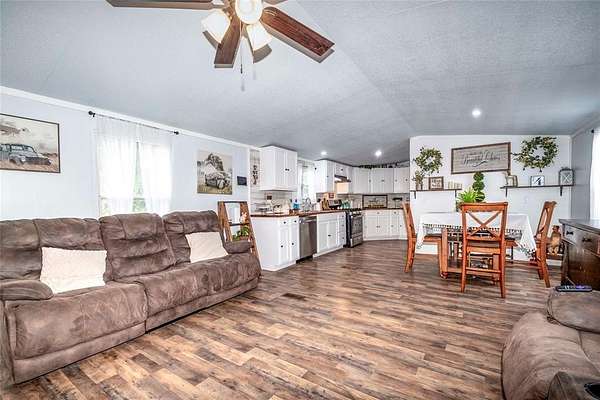 The land is partially fenced and includes a move-in ready mobile home with many recent updates--perfect for living in while you build or as a long-term residence.