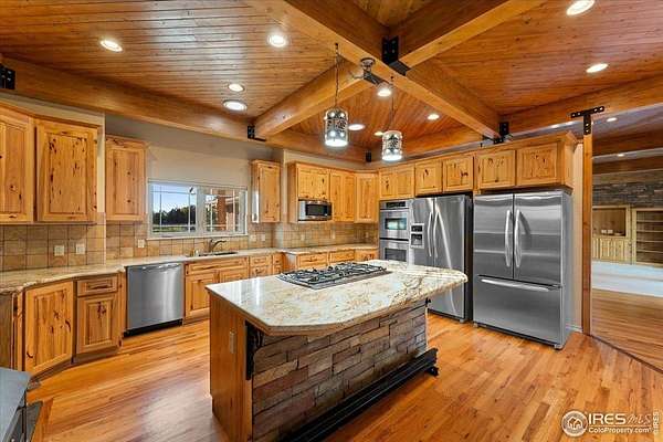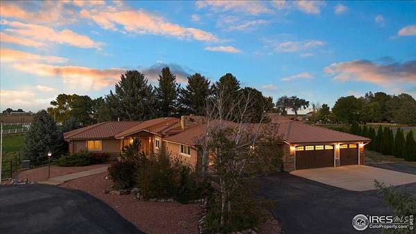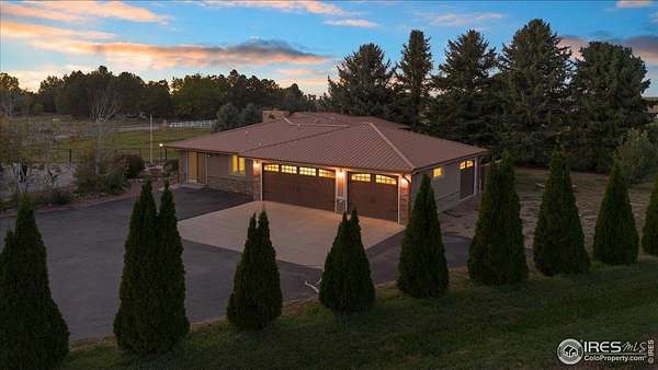 Welcome to this beautiful ranch-style home set on 2.5 acres on the outskirts of Greeley. Enjoy the perfect blend of country charm and modern comfort with plenty of room for your animals and horses - complete with corrals, hay storage, and a spacious new insulated barn/outbuilding. The property includes Pinnacle Park Irrigation water for the seeded grass hay pasture, yielding approximately 100 bales per cutting.The yard showcases mature landscaping and a peaceful setting, ideal for outdoor relaxation. Inside, you'll find top-quality finishes throughout and fresh interior paint. The kitchen is a showstopper, featuring two full-size refrigerators and double ovens - perfect for entertaining or large gatherings. Additional highlights include leaf filters on the gutters and a generator for added peace of mind.Best of all, there's no HOA or metro district! Don't miss this opportunity to own your dream ranch-style home with all the space and amenities you've been looking for.