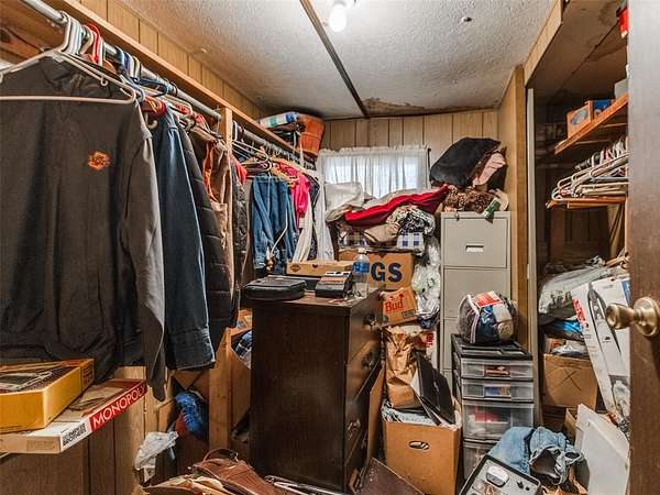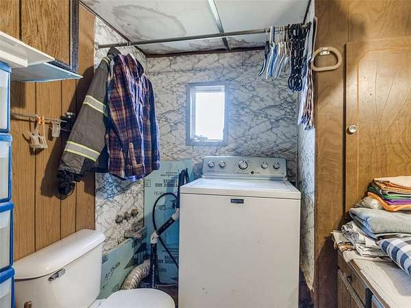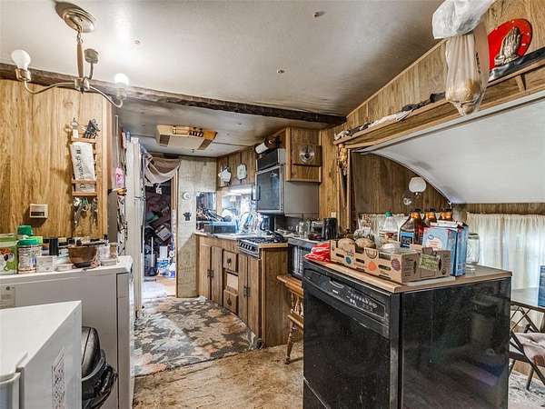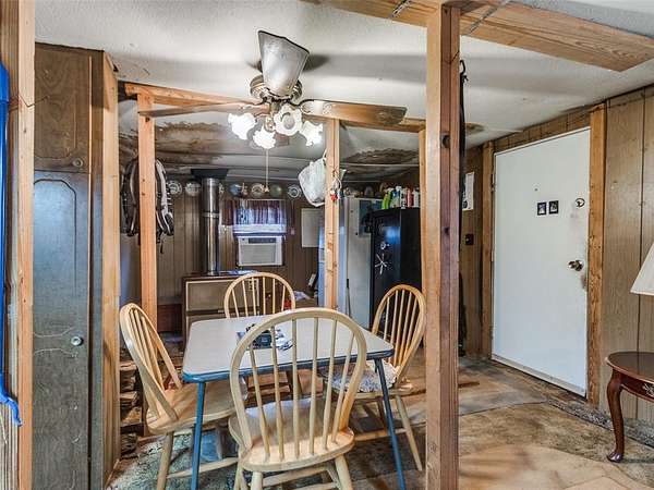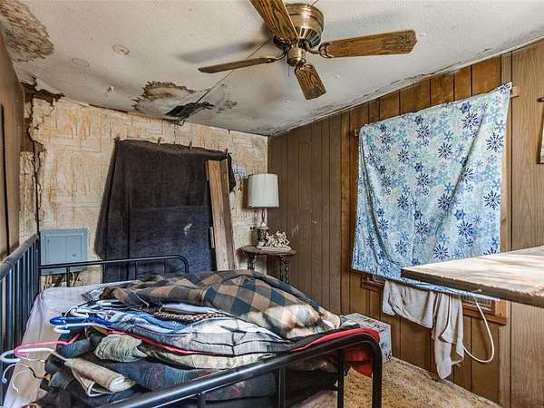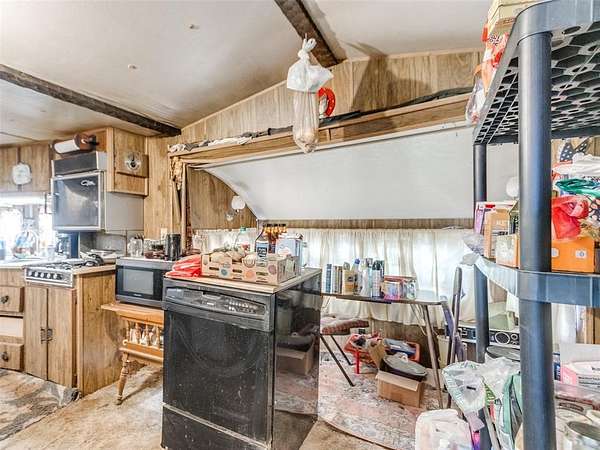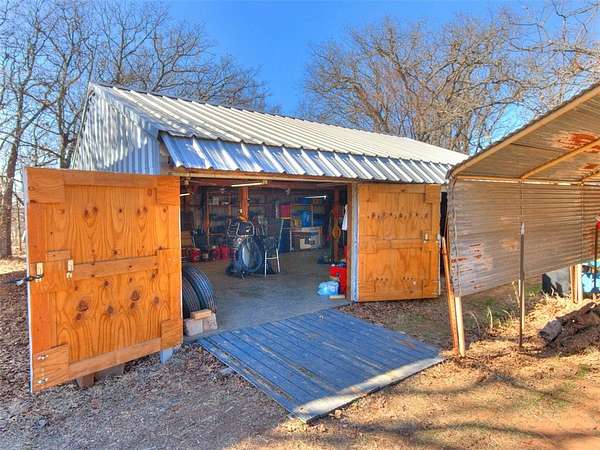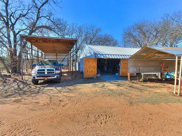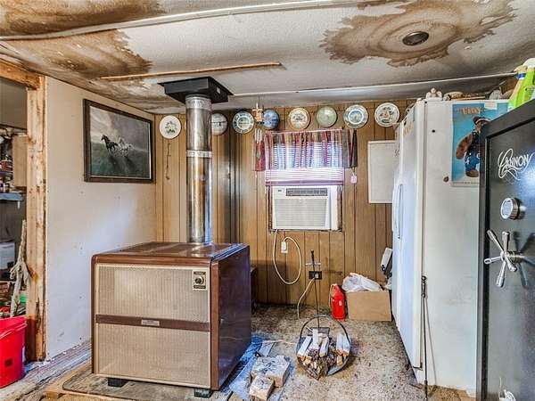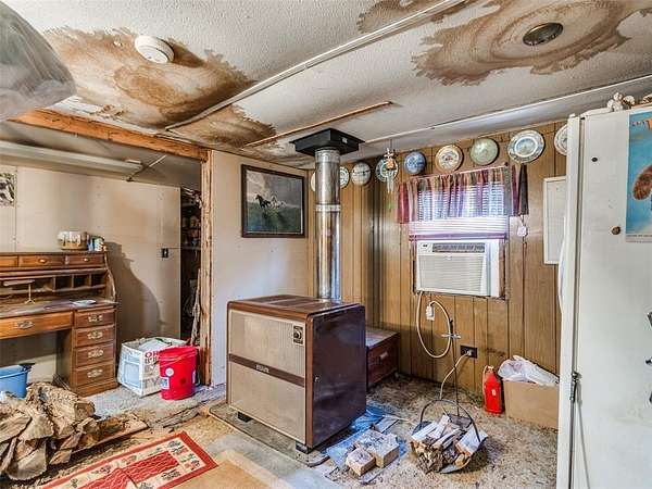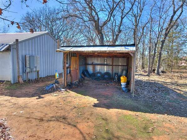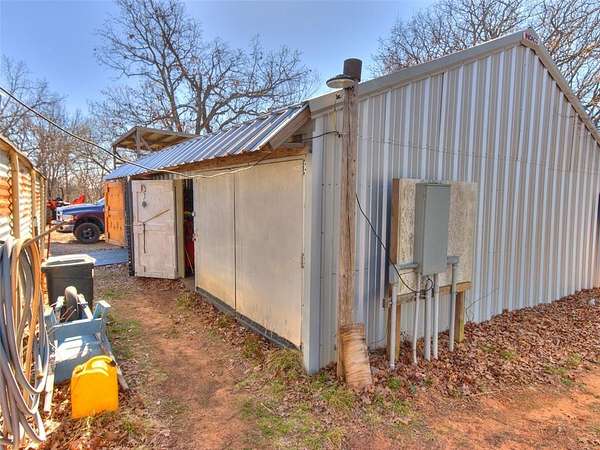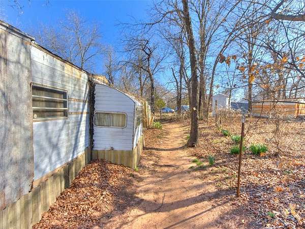 This 'home' is barely liveable and probably needs to be demolished. It does have 1 working bathroom, a kitchen sink and working stove top only. Nice woodburning stove for heat, and a window unit for A/C. Roof leaks. One useable bedroom and a front room. 2 metal carports; a 24 x 30 metal storage building/workshop with electric and an overhead door. a metal RV cover; several smaller storage buildings. 500? gallon propane tank appears to be part of this property. All of the junk, debris and personal property inside and outside stays. Gravel driveway. Current appraisal at $45000. Quick access to HW 66, Chandler, Wellston and Turner Turnpike.