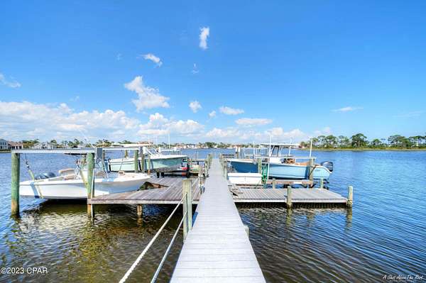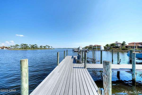 Premier waterfront lot with gorgeous views of Grand Lagoon. Located in the gated community of Finisterre at the east end of Panama City Beach. This improved lot has a new seawall and has already been filled and has 2 jet ski lifts in community dock that convey with purchase. Finisterre is a gated waterfront neighborhood with amenities such as tennis, pickleball, basketball, a playground, and community dock. Walk to several popular restaurants and only a short drive to St Andrews State Park, boating, and of course, the beautiful beaches of Panama City Beach! Come and build your dream home on the lagoon! The adjacent lot is also for sale (mls# 763159 ) giving you the chance to buy 2 side by side lots in one of most prestigious neighborhoods in Panama City Beach! Please check in to any measurements or utilities to confirm information. Call today!