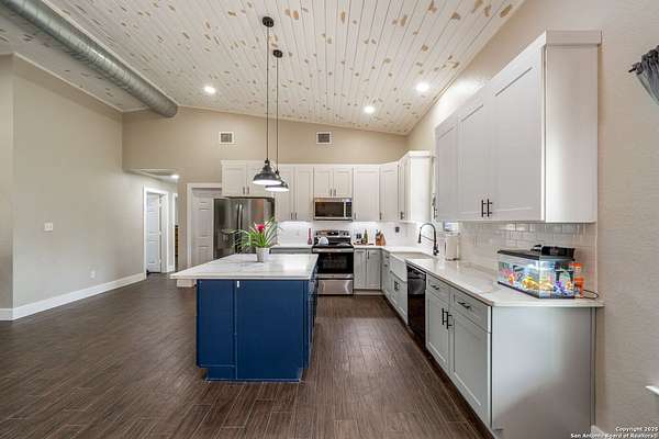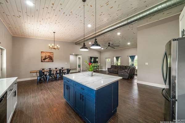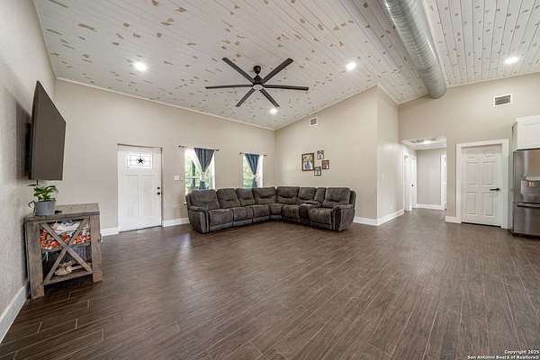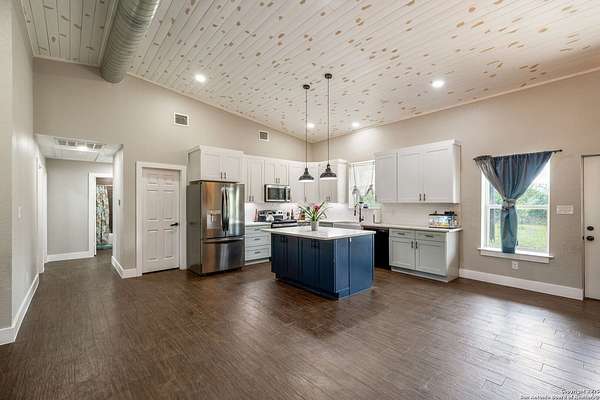 Enjoy space, freedom, and a slower pace of life on 4.5 open acres with no HOA and no city restrictions. This 4-bedroom, 2-bath barndominium is ideal for families ready to experience country living without giving up comfort or convenience. The open-concept layout connects the kitchen, dining, and living areas, creating a functional space for everyday living, family time, and entertaining. An attached shop offers added flexibility for storage, projects, a home gym, or future bonus space. Outside, the fenced backyard provides a safe area for kids and pets, while the surrounding acreage offers endless possibilities for gardening, animals, outdoor activities, or simply enjoying the quiet and wide-open views. This property offers room to grow, space to breathe, and the freedom to create the lifestyle you've been dreaming of.