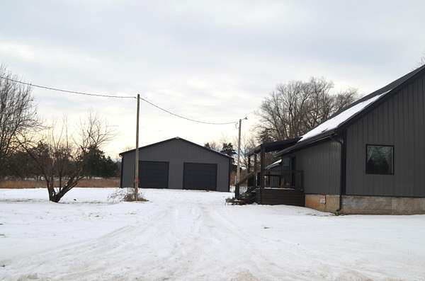 This newly built home offers modern construction and room to spread out on 3.57 acres. The home features durable metal siding and a metal roof, with 2 bedrooms and 1 bathroom. Inside, you'll find a spacious open concept living and dining area, plus a spacious kitchen with abundant cabinetry and quartz countertops. The refrigerator, washer, and dryer all convey. A sunroom provides additional living space, while a loft area adds flexibility for storage, an office, or extra sleeping space. The home is heated with electric heat and also includes a boiler system, with lines already run to the shop for future heating. The 40x40 shop is a standout feature with concrete floors, two overhead doors with openers, and plumbing in place for a full bathroom--ideal for hobbies, a workshop, or equipment storage. This property offers peaceful country living with modern amenities and versatile outbuildings. Property is located approx 50 miles from Springfield and 15 miles from Mt. Vernon. Schedule your showing today.