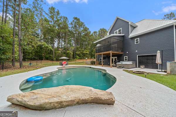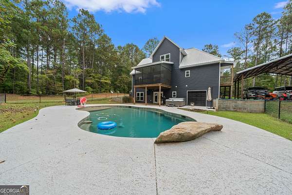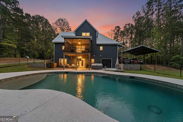 Est $3,159/moWelcome to 332 Hickory Ln - a stunning retreat offering luxury, space, and comfort. This exceptional 4-bedroom, 3.5-bath home features a private lower level living space, ideal for entertainment or a second primary suite. The open layout includes granite counters, tile bathrooms, luxury vinyl plank floors, stainless appliances, cameras, a walk-in pantry, and a breakfast area. Step outside to a covered deck overlooking a large fenced in gunite pool and a creek on the property. Additional highlights include a private 5+ acre lot contiguous to property. Don't miss this exceptional property!