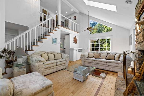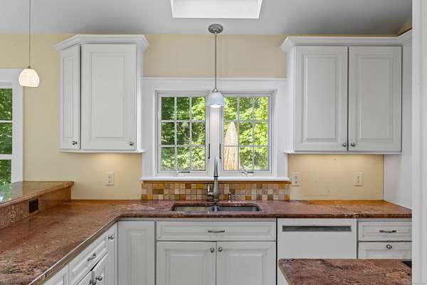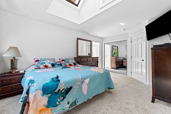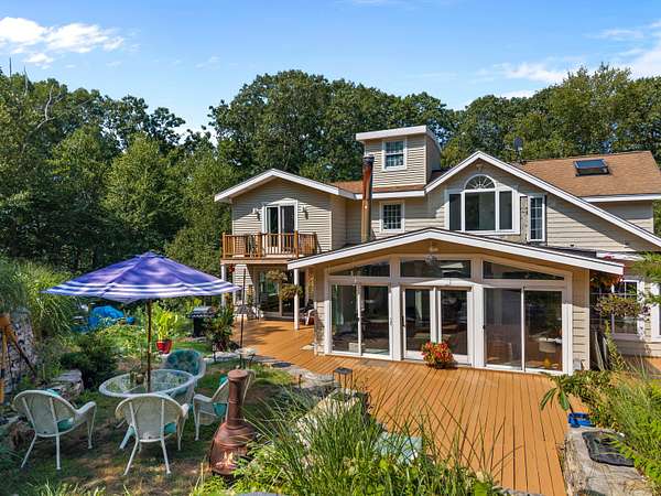 Beautifully set atop a 1.87-acre lot, this custom-built Contemporary Colonial home offers elevated privacy, sweeping views, and access to 40 additional acres. As one of five owners sharing 20 acres, with access to another 20, this property includes a scenic open field ideal for gatherings. The home features 3 bedrooms, 3.5 baths, and a two-car garage. A bright, open layout centers around a spacious kitchen with a large island cooktop, reddish brown granite counters, breakfast bar, prep area, and cozy nook. The dining, family, and living rooms flow onto a wraparound deck perfect for entertaining or quiet mornings. The living room impresses with two-story windows, hardwood floors, a stone fireplace, skylights, and a stylish staircase. An interior balcony adds architectural charm. The main level includes a full bath and bedroom with easy access to shared spaces. On the upper-level, two primary suites offer private baths, one with its own balcony. The lower level includes a half bath and a fourth bedroom, ideal for guests or a home office. A rare blend of privacy, space, and natural beauty makes this home truly special.