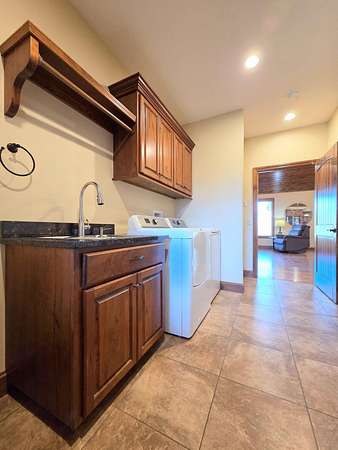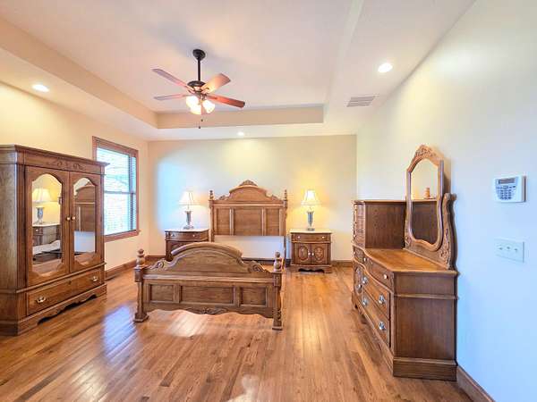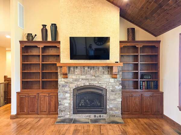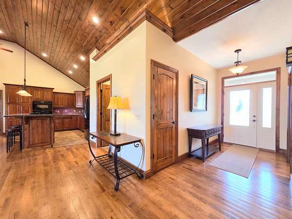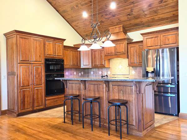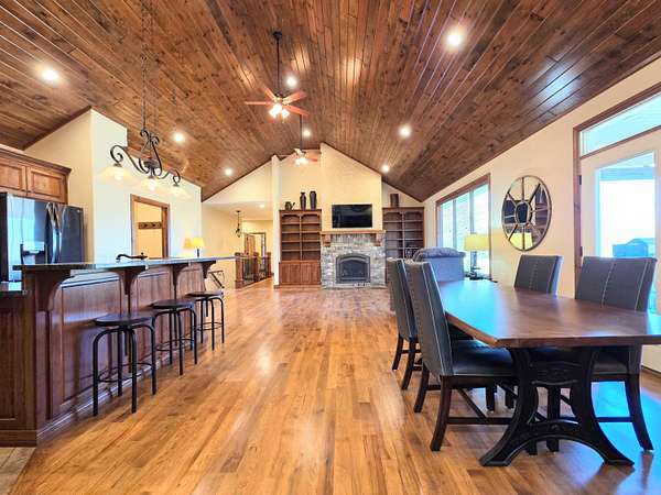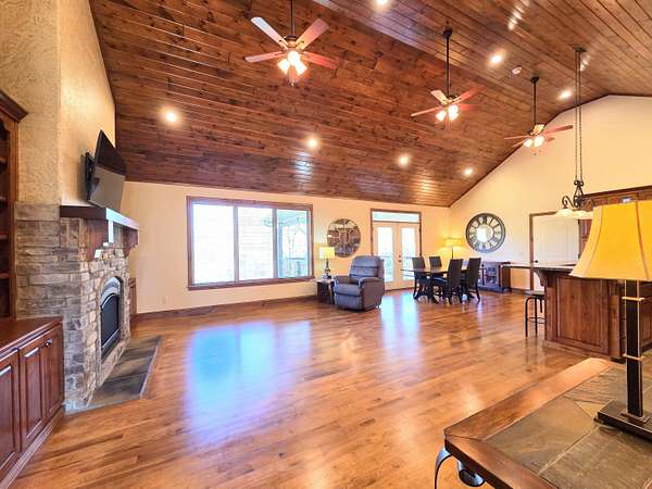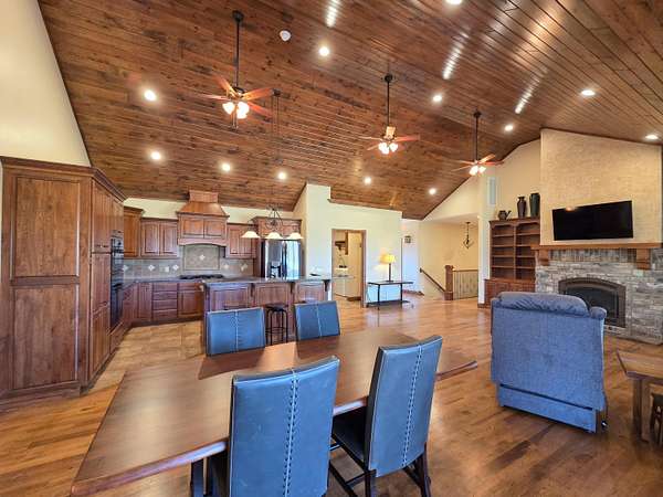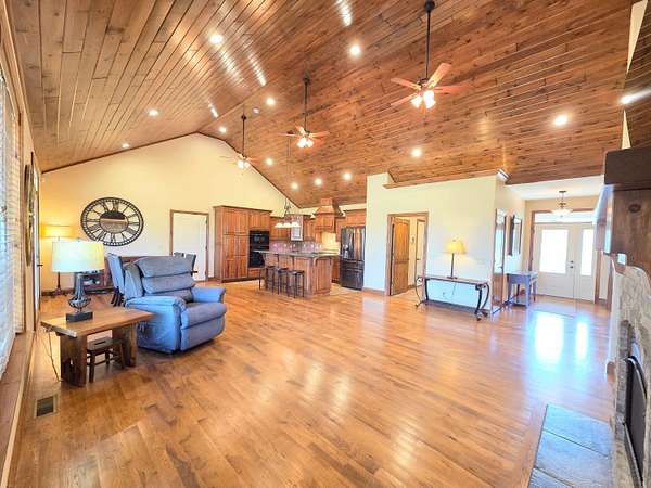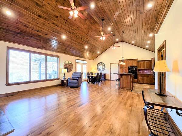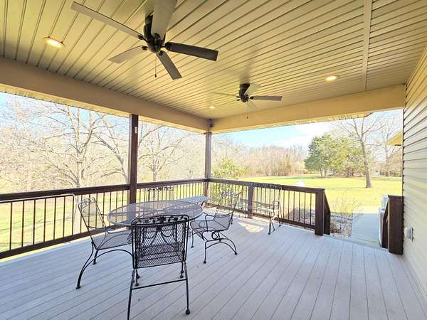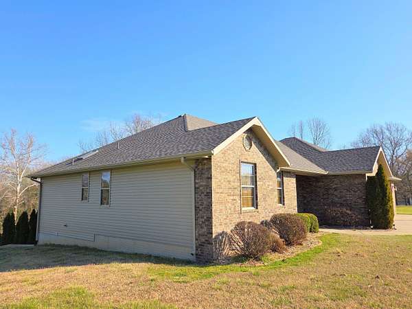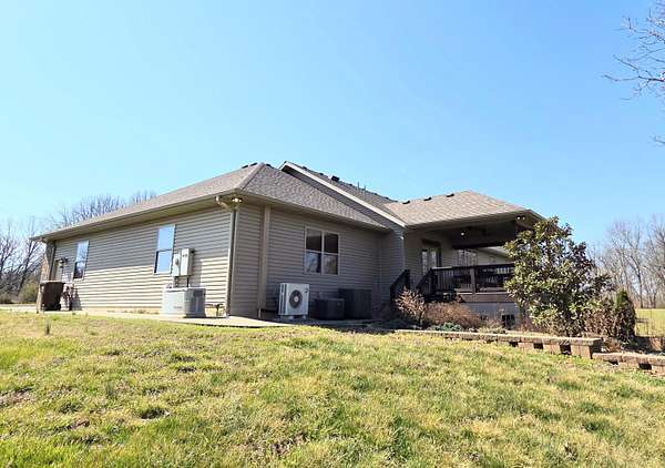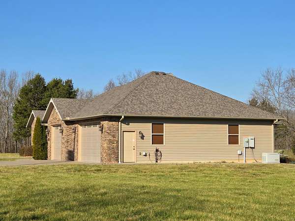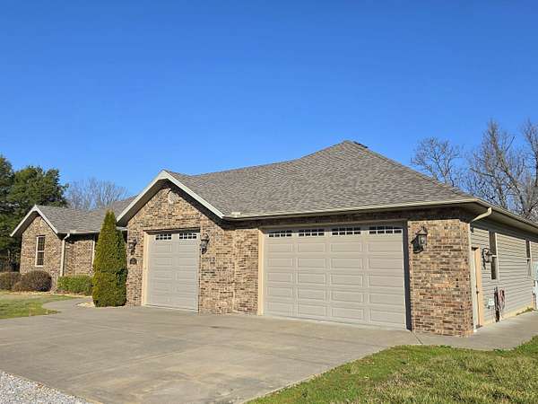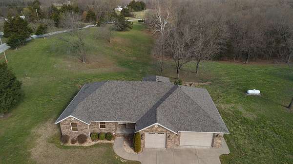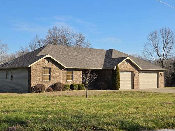 A country retreat that's hard to beat! Very rarely does a home like this come up for sale and even more rare are the words to adequately describe it! Built by renowned, veteran home builder Kenny Datema in 2017, this custom walkout basement home is impressive from the moment you lay eyes on it. Starting with the location, this home is just 10 minutes due south of Nixa on a quiet dead end blacktop road. Pulling up to the home, you'll find a wide, level driveway leading to an oversized 3 car attached garage (which can actually hold 4 cars) with 9' tall garage doors and a full brick front. You'll love the backyard with its gentle slope leading to a wooded tree line that you can admire from the spacious covered deck (all composite decking too!) or the back patio. You'll also see that this home is equipped with a Generac whole house generator and is capped off with a roof that's less than a year old. Then step inside to gleaming Hickory hardwood floors, soaring vaulted ceilings covered with New England pine, an impressive brick fireplace hearth, a gorgeous kitchen with custom Rustic Cherry finished cabinetry, granite counters, a gas stove cooktop, pull-out drawers in the pantry cabinet, and GE Profile appliances. The main level features 3 bedrooms, 2.5 bathrooms, and the primary en suite bathroom has a custom tiled walk in shower with it's own hot water heater. The full basement is just waiting for your finishing touches and is set up for an additional bedroom, a full bathroom, an additional living room plus plenty of storage space. The beauty of this home is more than skin deep as you'll see the construction quality is truly top-notch. Built with steel I-beams, 300 AMP electrical service, a zoned HVAC system (heat pumps with propane backup) and a garage set up that's a car enthusiast's dream, this house is no run of the mill spec house specimen. You'll be impressed, maybe a little obsessed, most definitely hard-pressed, to find another address, that you'll say is best!