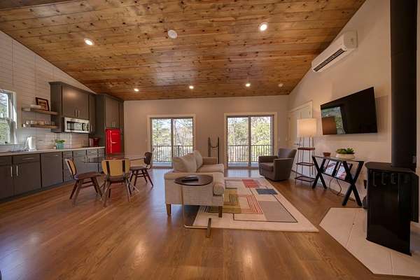 From Eureka Springs: Take 62 west to left onto 187 at RiverLake gas station. 187 to left onto Mundell Road. Left onto the Panorama Loop / Panorama Shores Drive. Stay right at the Y. House is on your right. Address of boat house is 395 Shore Lane. Directions to boat house: Follow Panorama Shores Drive past the main house and take a right onto Shore Lane. Follow down hill and continue to the house on your right.