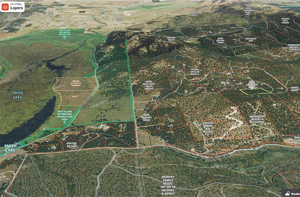 Smith Lake Road to Springhill road. Up the first hill then left on Tranquil Valley Trail, road does 90 degree turn then you're on Torto Loop. Stay right at the first fork, drive up the road until a right turn on Racheals Meadow. Drive up to see parking area at the corner of Racheals Meadow and Highland Meadow (on the property).