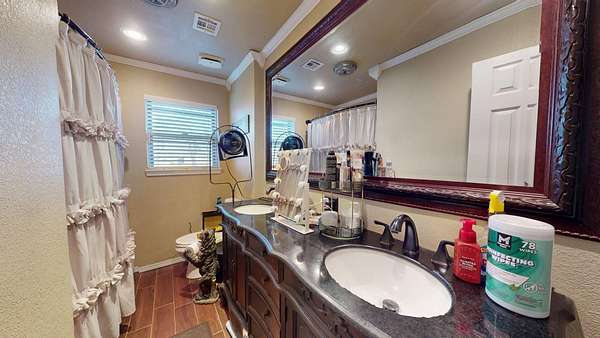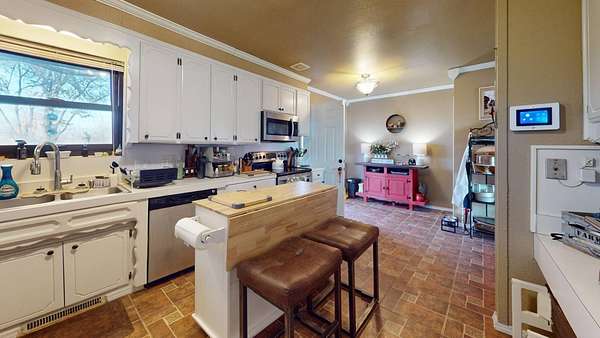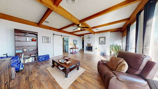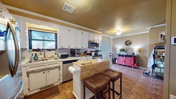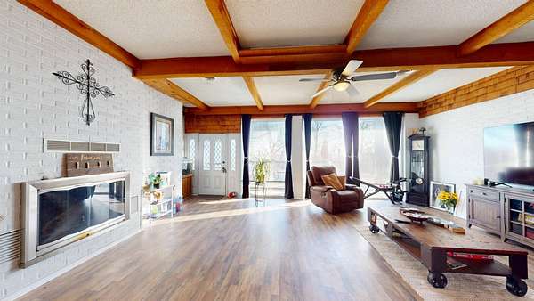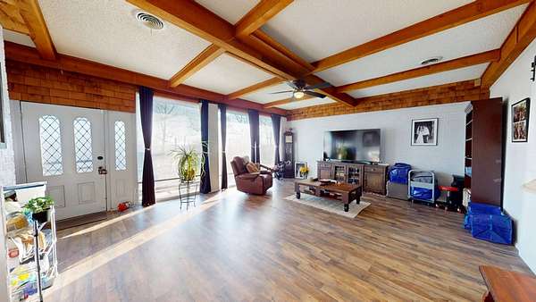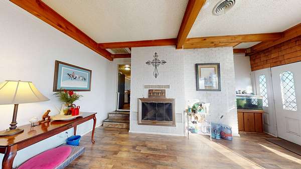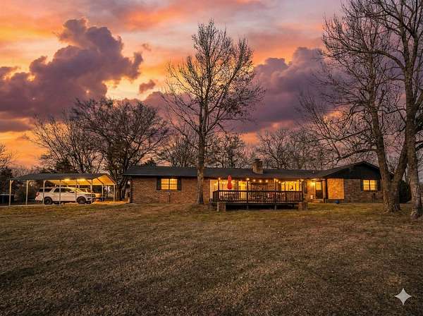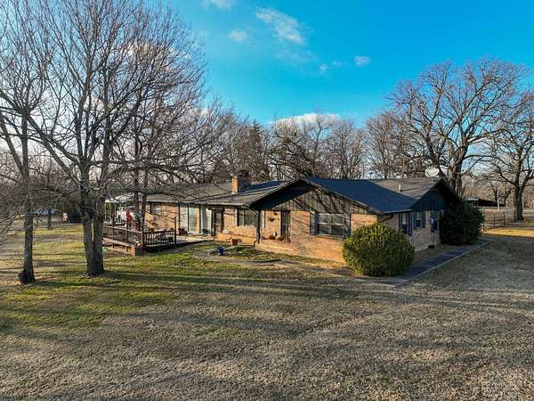 Located in the highly sought-after Hereford Lane community, this beautiful multi-colored brick country home with a slick black roof offers the perfect blend of privacy, usable acreage, and everyday convenience-just minutes from shopping, dining, and the hospital. Situated on 5.34+- acres, this well-maintained property delivers both function and curb appeal. A large shop with concrete floor, equipment shed, and dog kennel setup provide excellent space for storage, animals, or hobbies. A huge circle drive winds throughout the property, allowing easy access and ample parking. Exterior improvements include a two-car carport completed in 2024, two-car garage, and an old storm shelter. A small fenced yard is perfect for pets and includes a hot tub located within the fenced area. The expansive added-on deck, completed in 2022, creates an ideal setting for outdoor entertaining. The roof and gutters were replaced in 2024, offering peace of mind and a clean, modern exterior look. Inside, the home is dripping in natural light and offers a warm, rustic feel with flexible living space throughout. Upon entry, you're greeted by a large open living area featuring a double-sided wood-burning fireplace, shared between the main living room and a spacious second den/living area or dinning adding character and cozy ambiance to both spaces. The living areas flow seamlessly into the updated kitchen area, perfect for gatherings and everyday living. The home offers 3 to 4 bedrooms, providing versatility for family, guests, or work-from-home needs. Down the hall are three bedrooms and two full bathrooms, both featuring updated bathroom improvements. On the opposite side of the home, the second oversized living area connects to a laundry room with abundant storage. Just off the garage is an additional heated and cooled room with a closet, updated with new flooring in 2022, making it ideal for a fourth bedroom, office, or flex space. The home also features updated flooring throughout the remainder of the home (2022) and fresh paint in many rooms, enhancing its move-in-ready appeal. With usable acreage, multiple living spaces, extensive updates, outbuildings, and a prime McAlester location, 332 W Hereford Ln is a rare opportunity to enjoy country living with city conveniences close by.