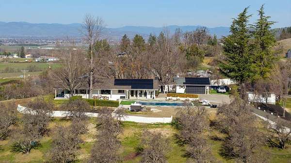Stunning View property, one of a kind, single level w/major updates in East Medford. Main home 2985 SQ FT 3 bdrm + office & 2nd home approx. 700 SQ FT on 5.87 irrigated acres w/city water overlooking the valley w/large windows & vaulted beam ceilings. Tahoe blue Gunite heated pool w/water features & hot tub. Paved, gated entry w/fruit trees, lg wraparound porches & decks to take in the views. Private knoll top setting w/flat areas set up for horses or animals. Barn w/3 stalls, tack room & workshop. 3 fireplaces in main house w/beautiful kitchen, quartz counters, island, dbl ovens & gas cooktop. Beautiful primary suite w/French doors leading to a private side deck, duel sinks, Jetted tub, lg tile shower, walk-in closet & fireplace. 2nd home w/a full kitchen one bedroom one bath super cute w/built-in's & fireplace. It is so unique & super close in 10 minutes to medical shopping 15 minutes to Rogue Valley International Airport.
